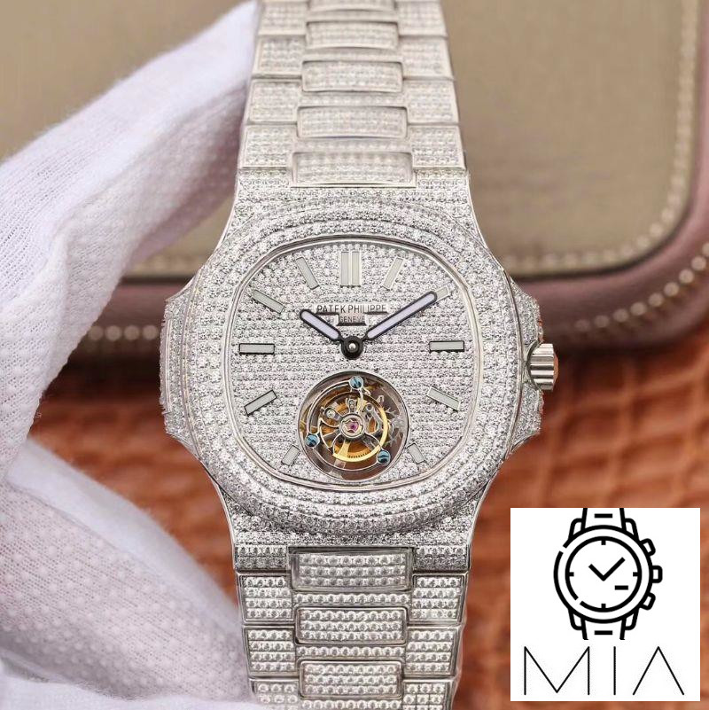 Patek Philippe Nautilus Jumbo 5711 Tourbillon R8 Factory 18K White Gold Diamond Dial