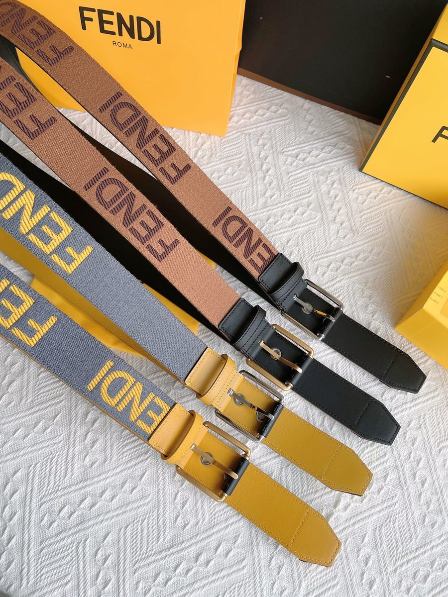 Fendi Reversible leather stitching canvas logo yellow logo belt 3.5cm