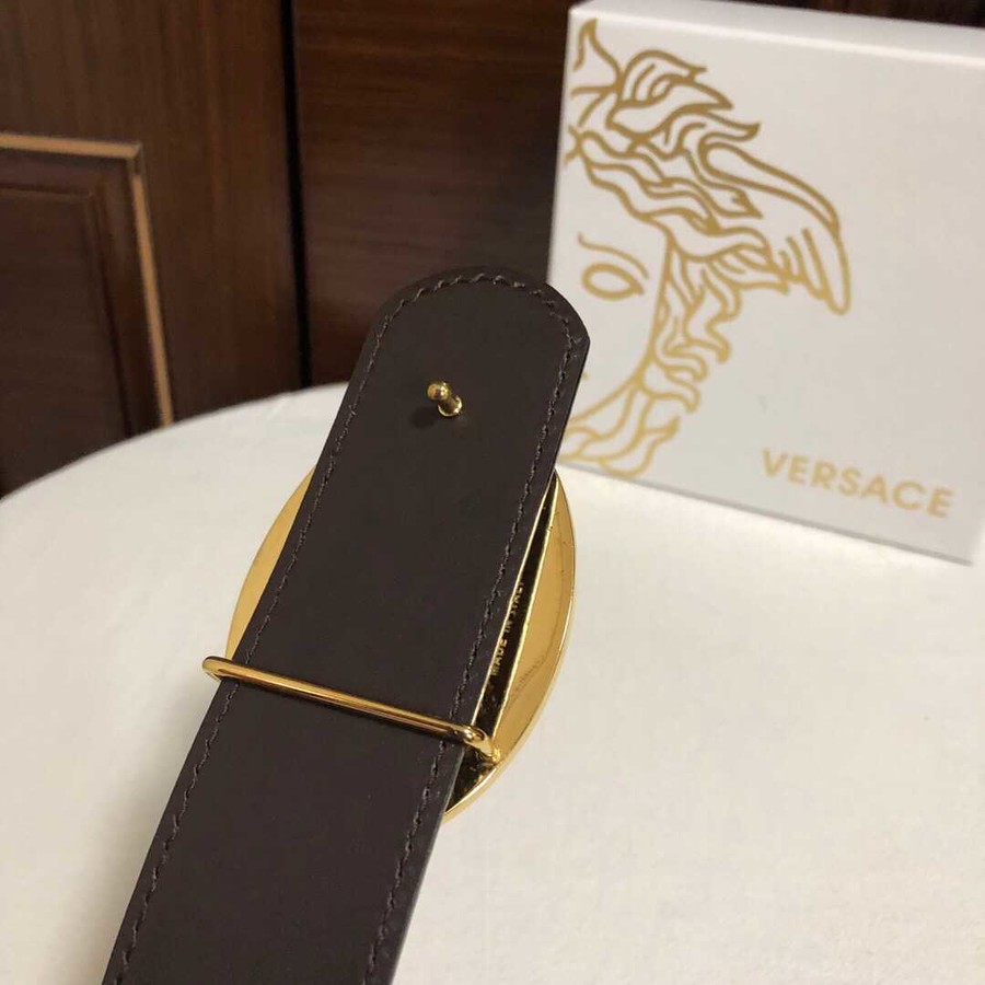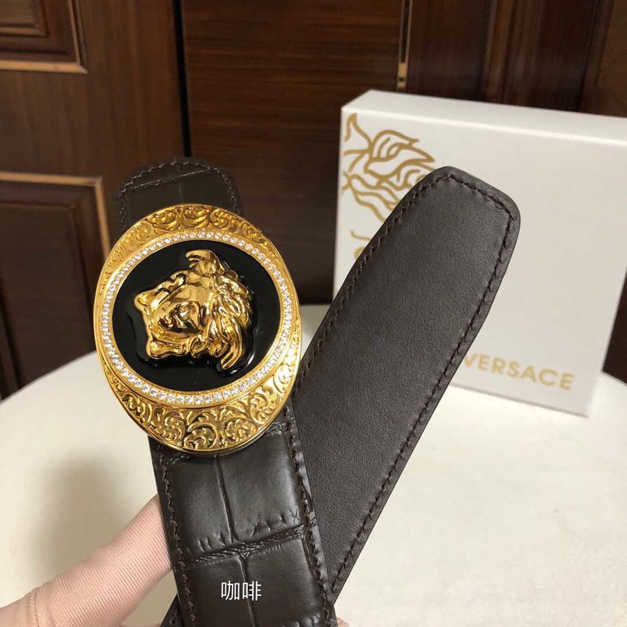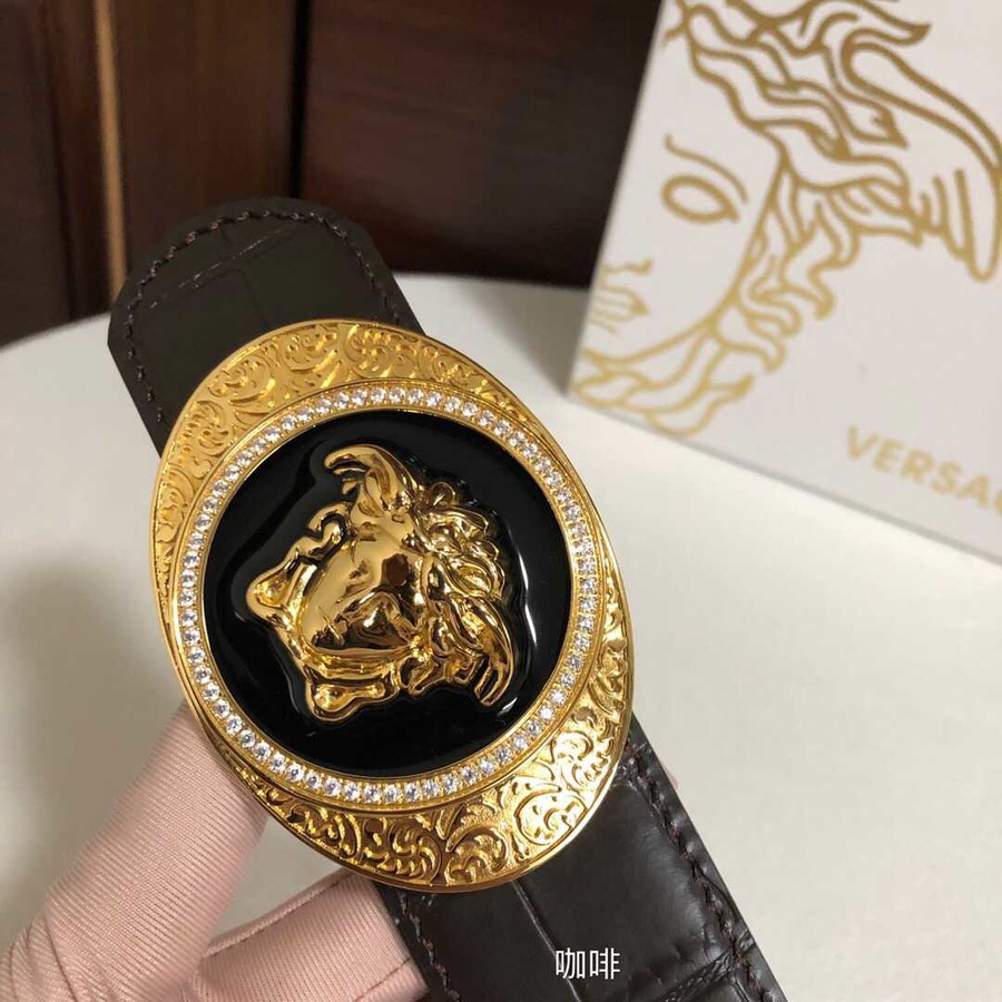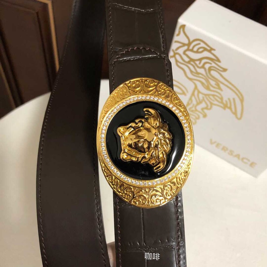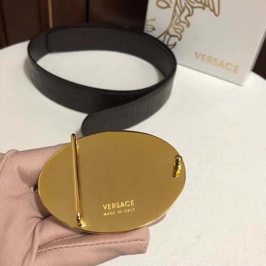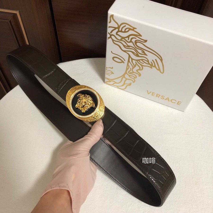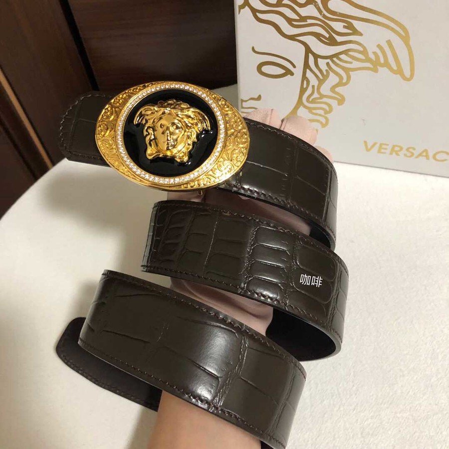 Versace Men s cowhide embossed crocodile pattern stainless steel Medusa head metal buckle belt 3.8cm