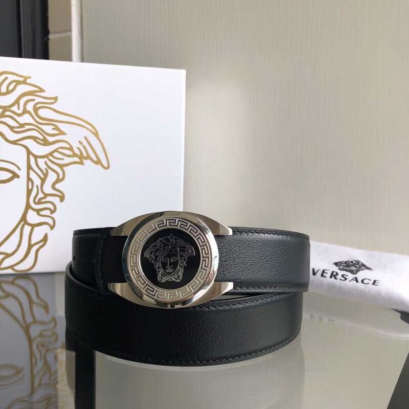 Versace Men s black cowhide sheep pattern belt 3.5cm