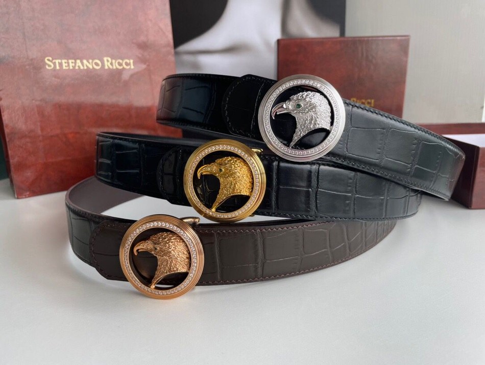 Stefano Ricci stainless steel eagle head inlaid hanging buckle men s belt width 3.8cm