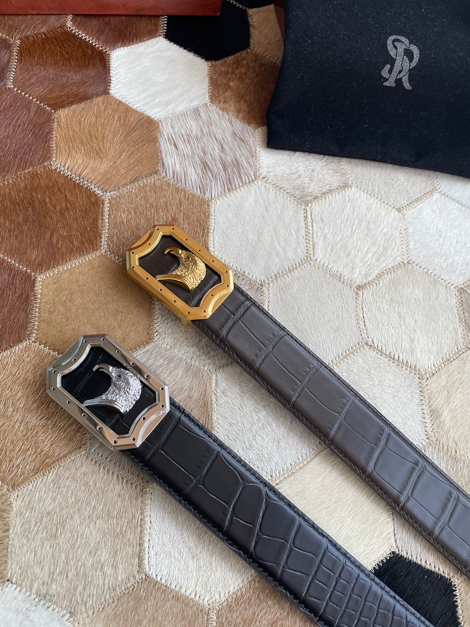 Stefano Ricci stainless steel eagle head with metal buckle 3.8cm cowhide fine imitation crocodile leather belt