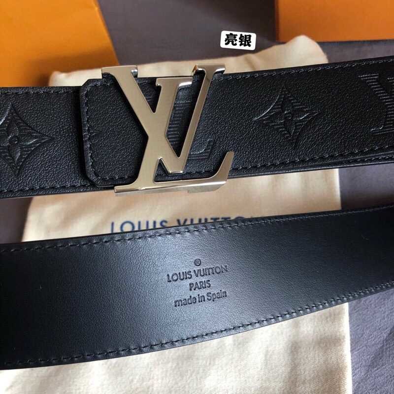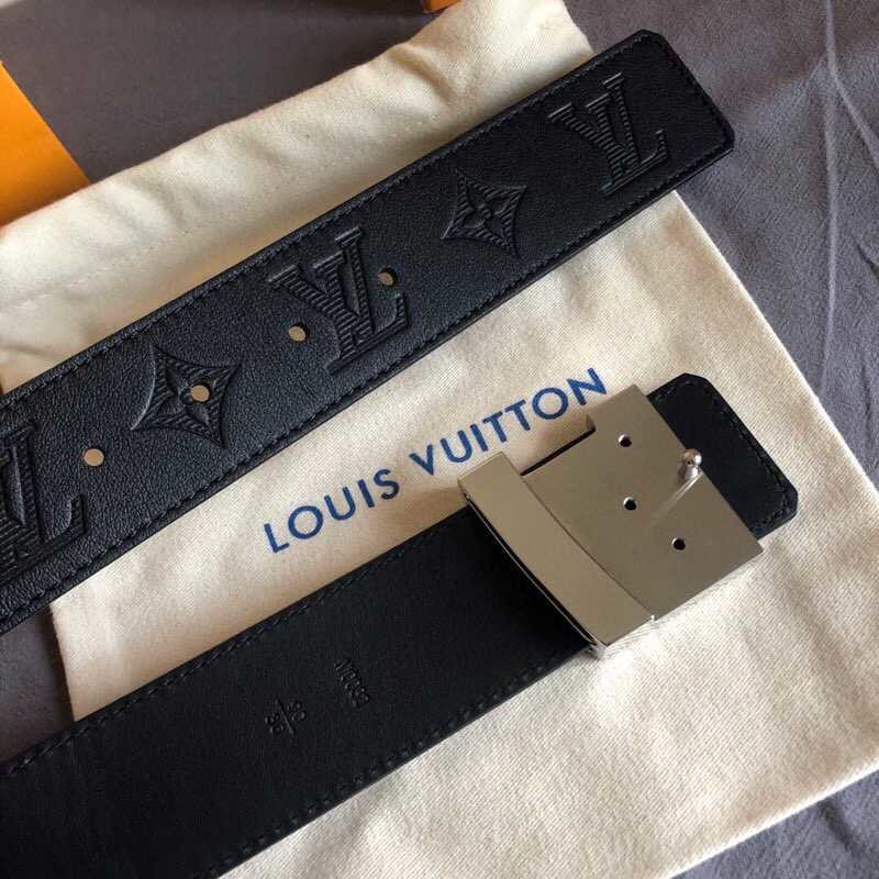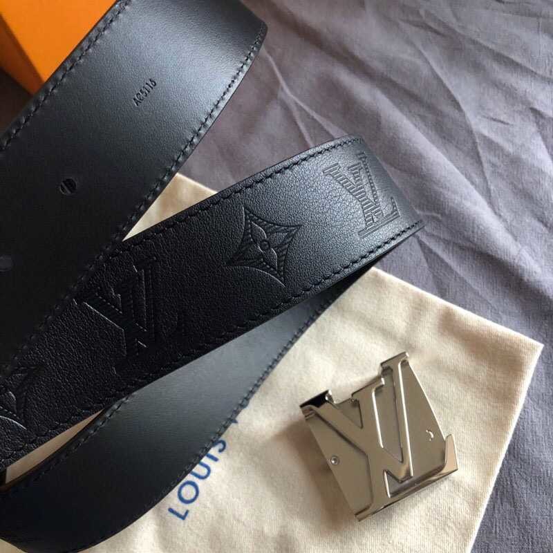 Louis Vuitton 40mm men s belt with embossed Monogram letters shiny buckle