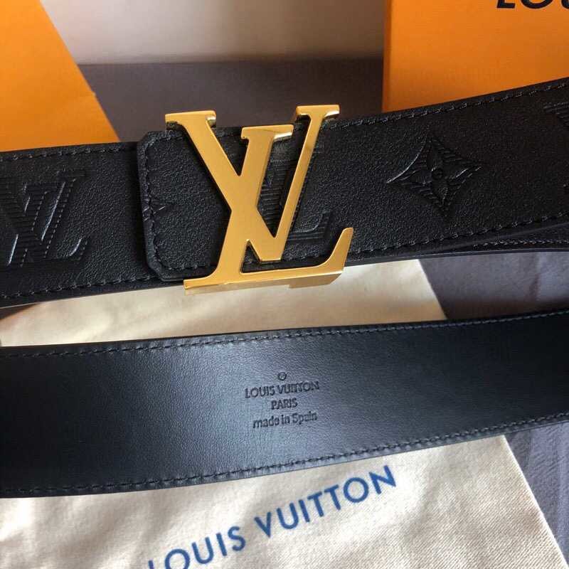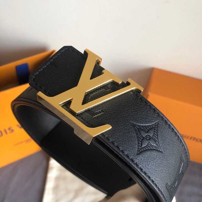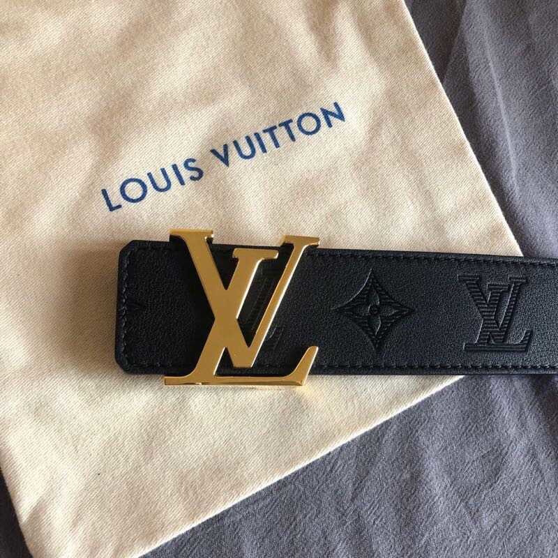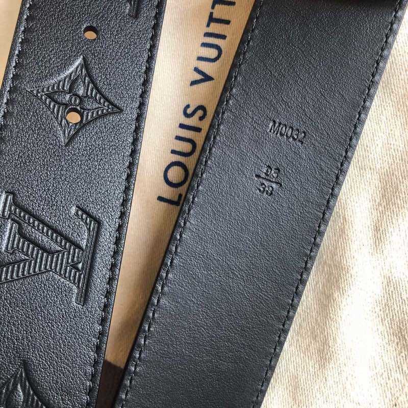 Louis Vuitton 40mm men s belt with embossed Monogram letters shiny buckle