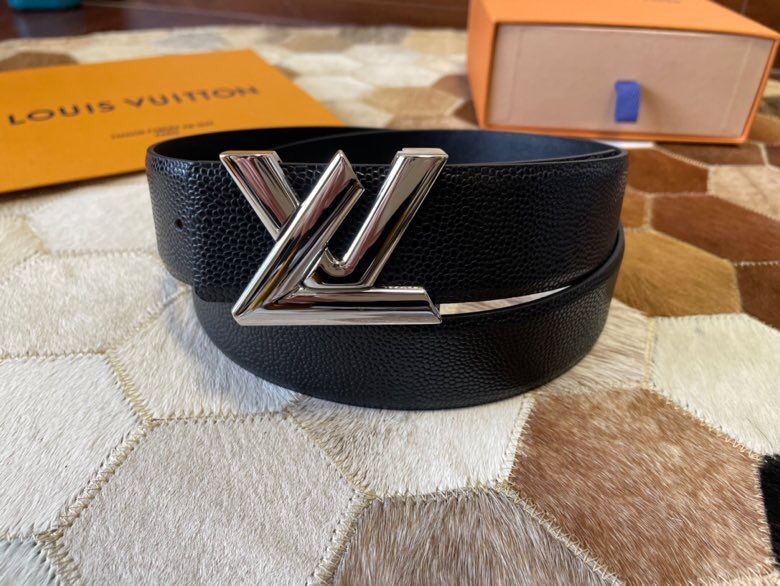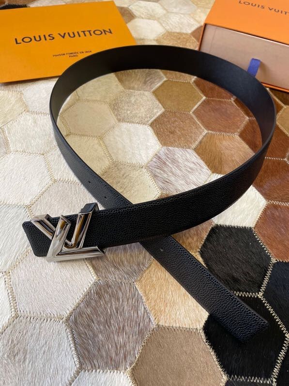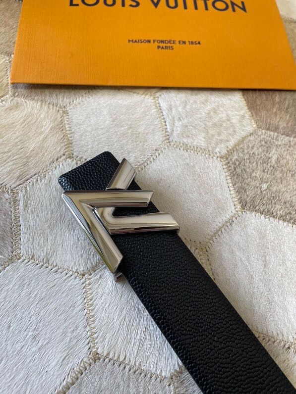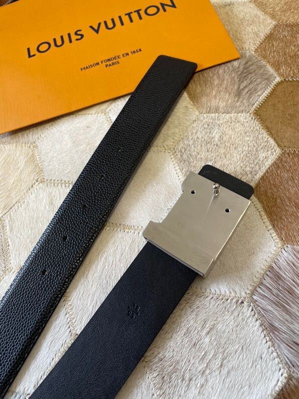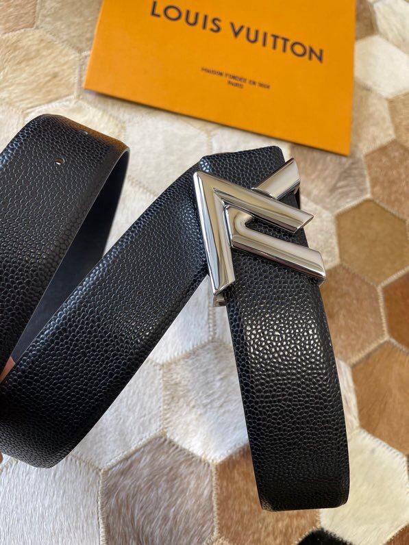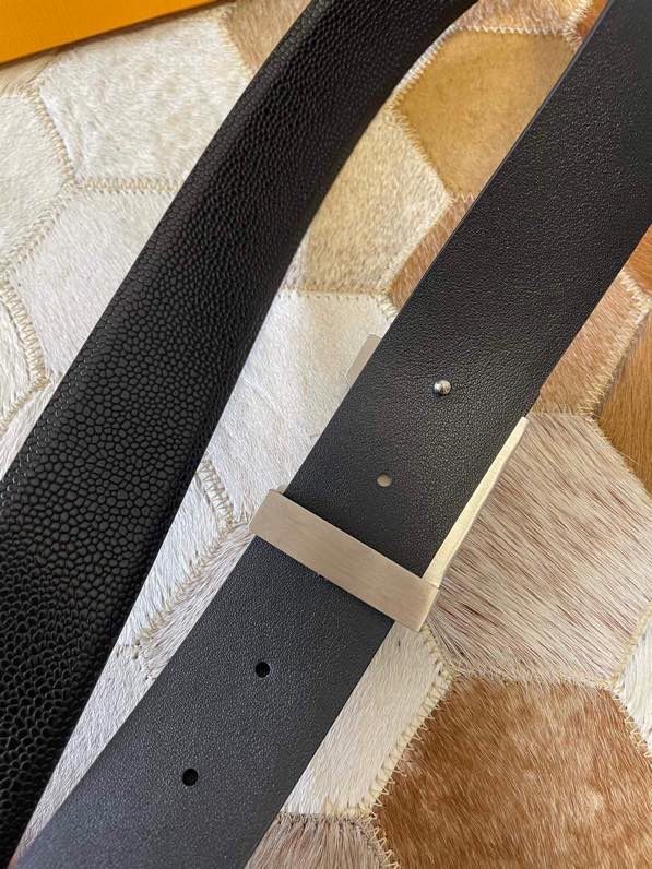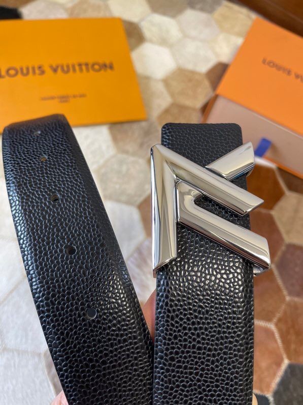 Louis Vuitton Men s Letter Metal Hardware Cowhide Pearl Pattern Belt 3.8cm