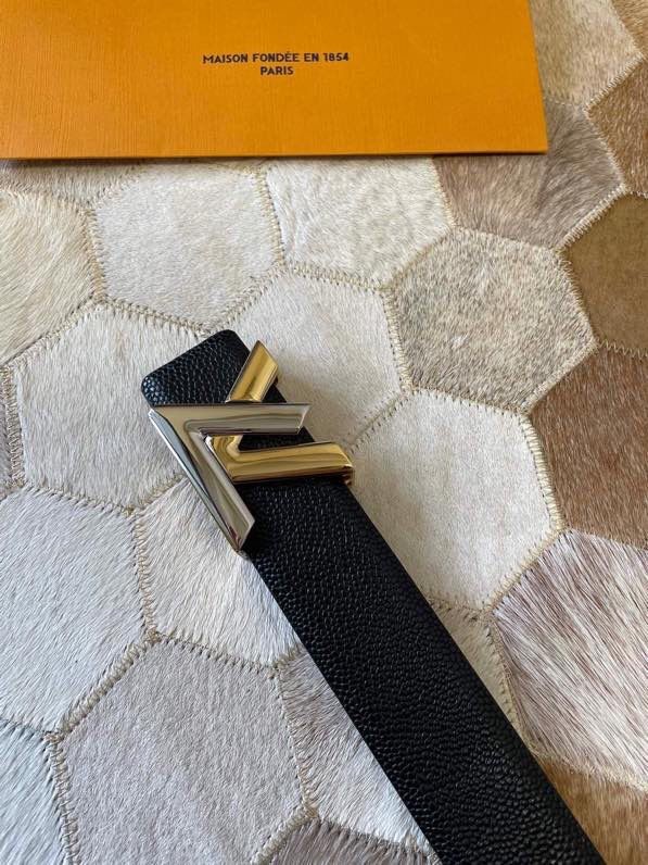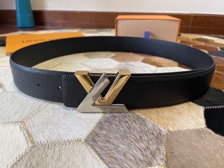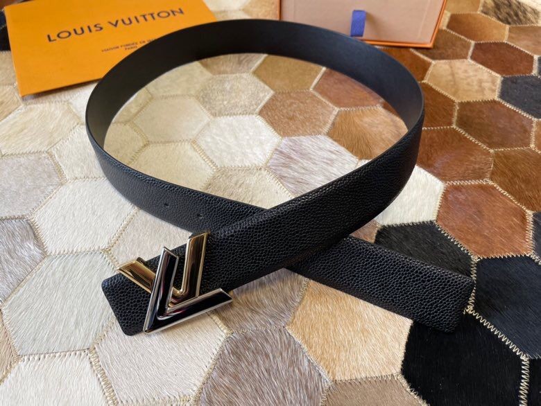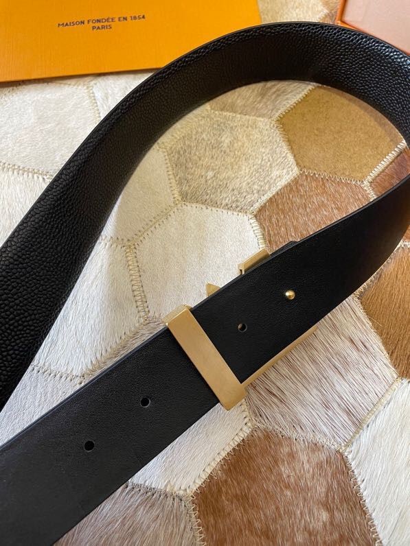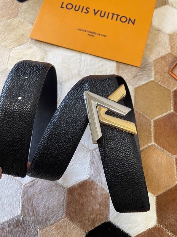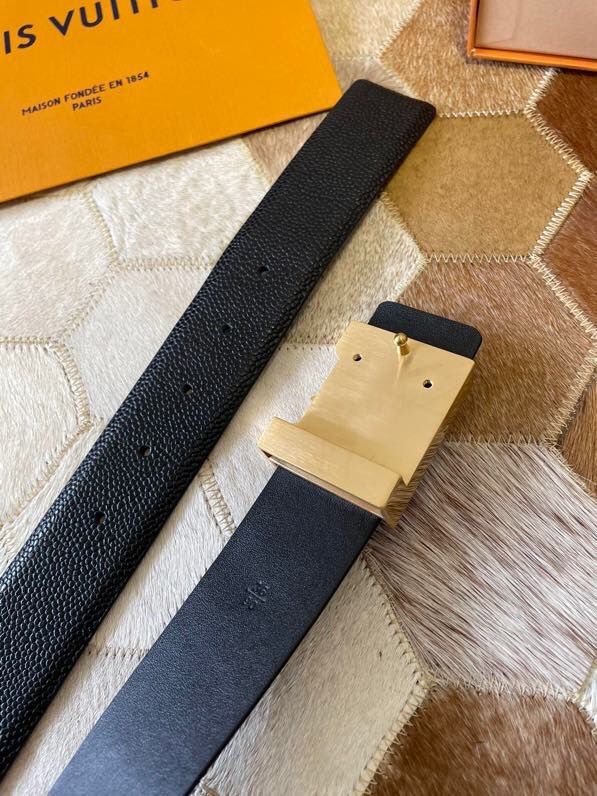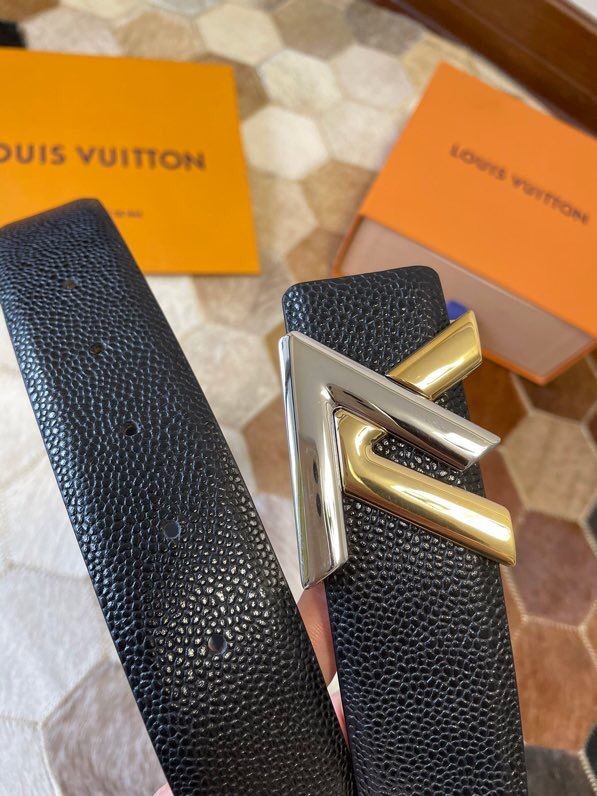 Louis Vuitton Men s Letter Metal Hardware Cowhide Pearl Pattern Belt 3.8cm