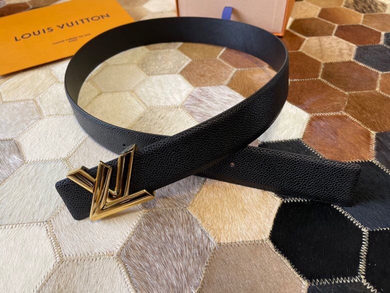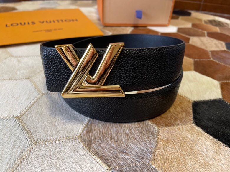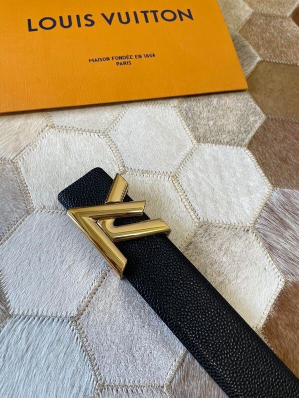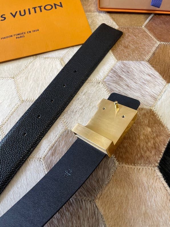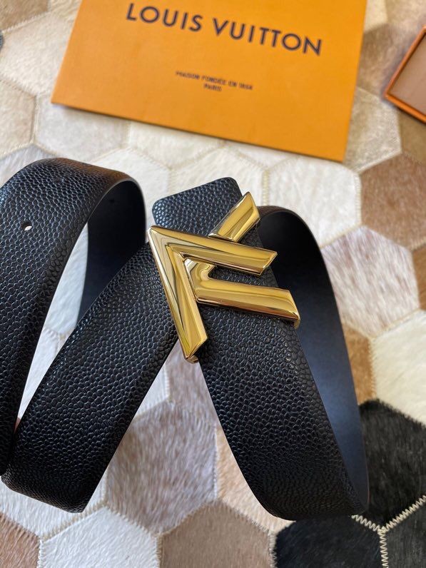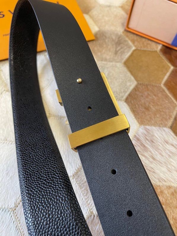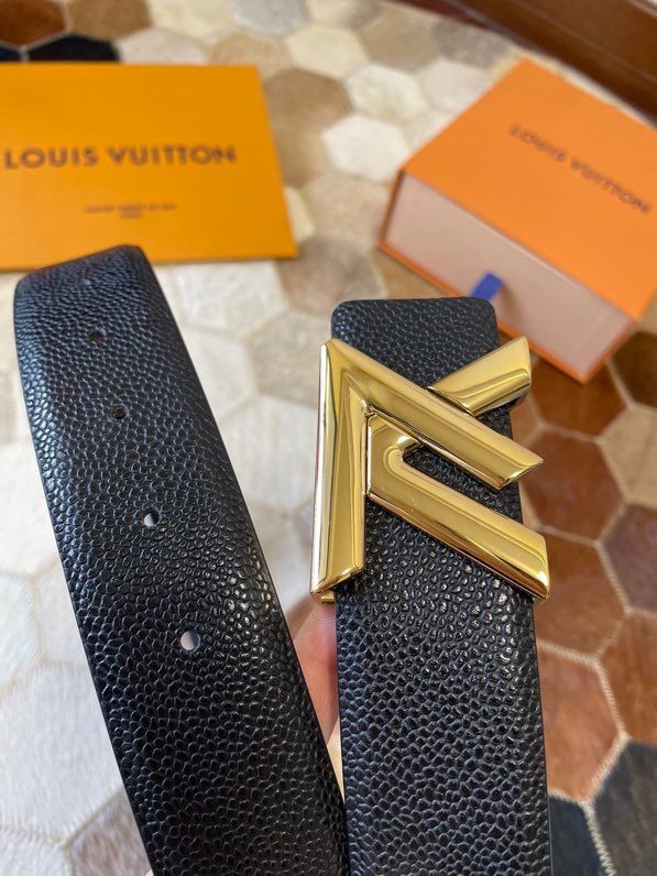 Louis Vuitton Men s Letter Metal Hardware Cowhide Pearl Pattern Belt 3.8cm