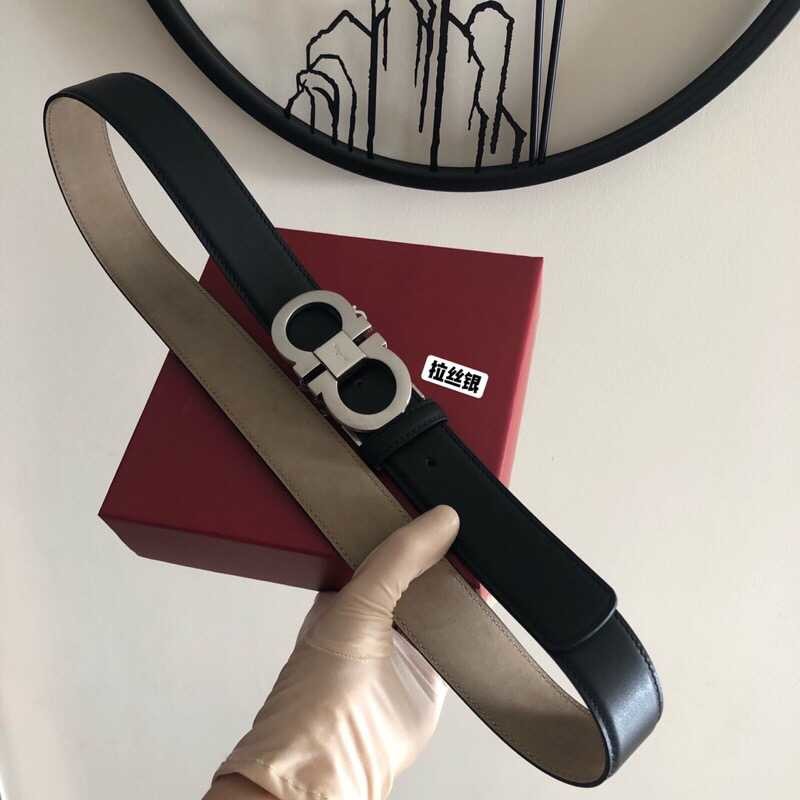Ferragamo 3.5cm Gancio metal buckle with cowhide frosted inner belt