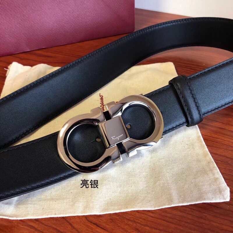 Ferragamo Men s Cowhide Reversible Available Classic Timeless Buckle Belt 3.5cm