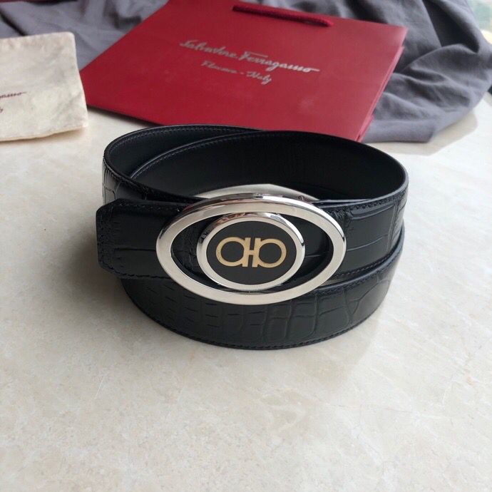 Ferragamo Men s 3.5cm stainless steel flip resin buckle leather embossed crocodile pattern belt