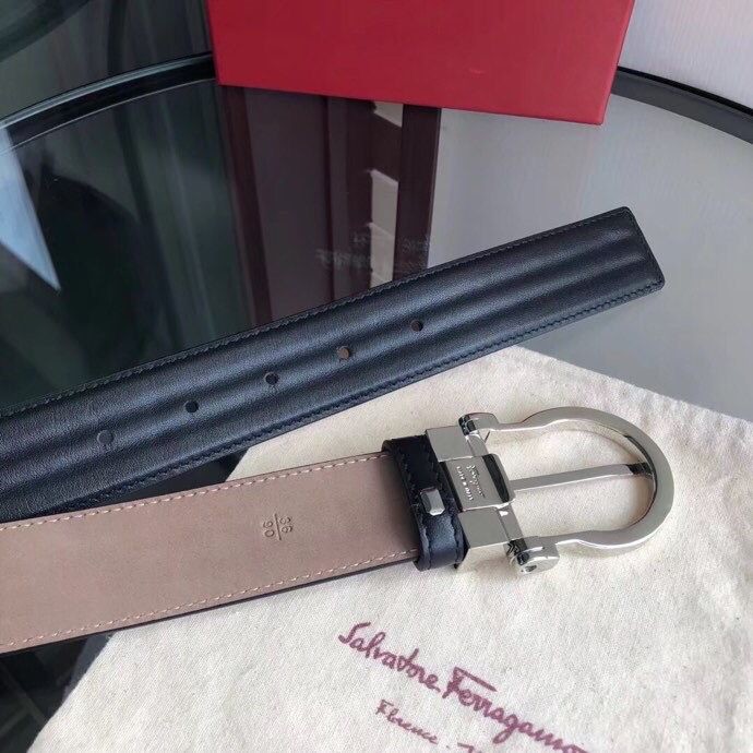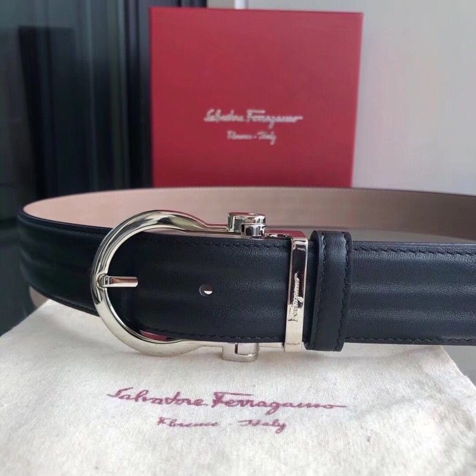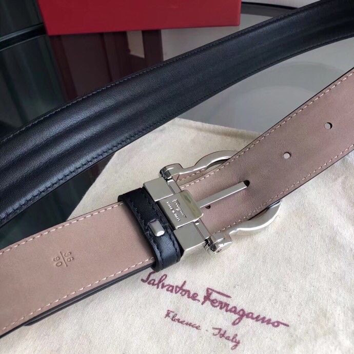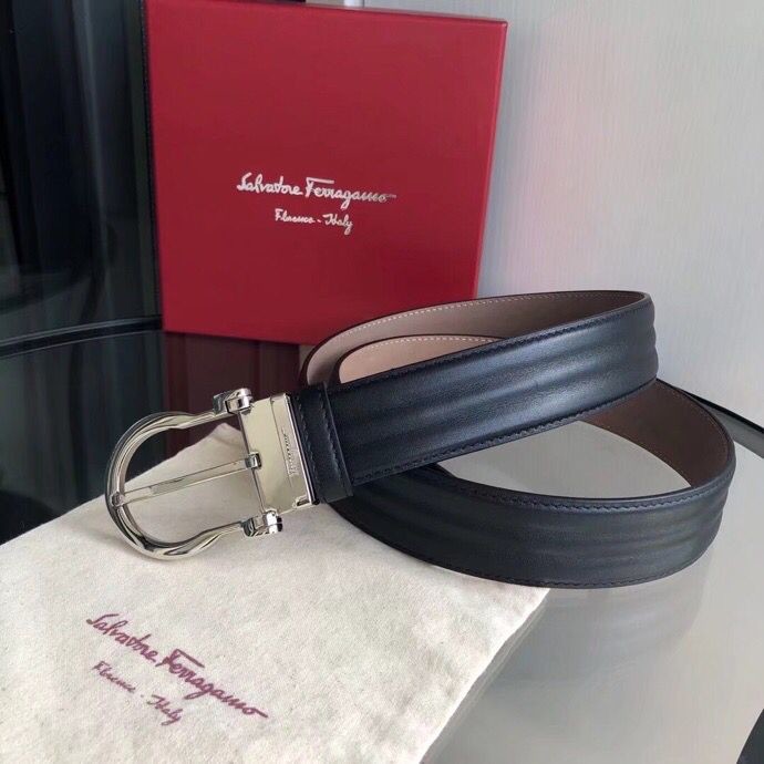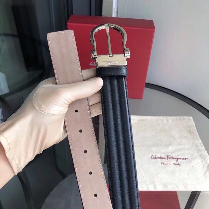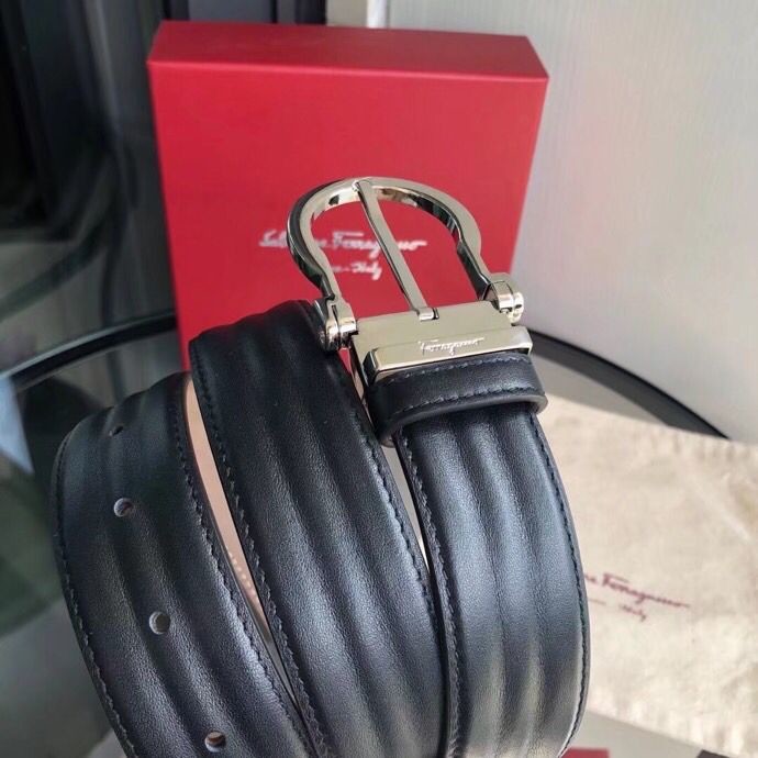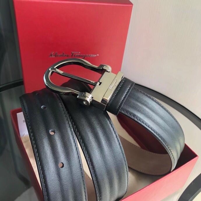 Ferragamo Men s 3.5cm Reversible Cowhide Wavy Belt with Exquisite Buckle