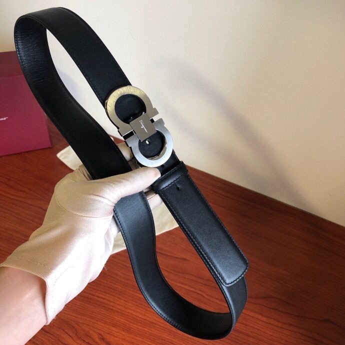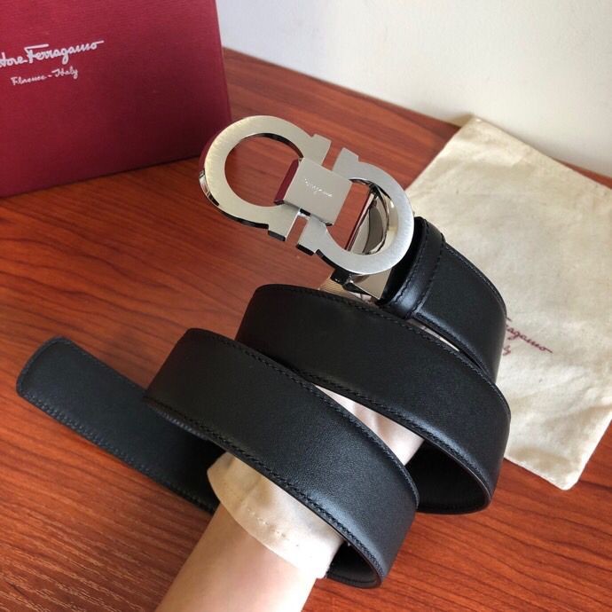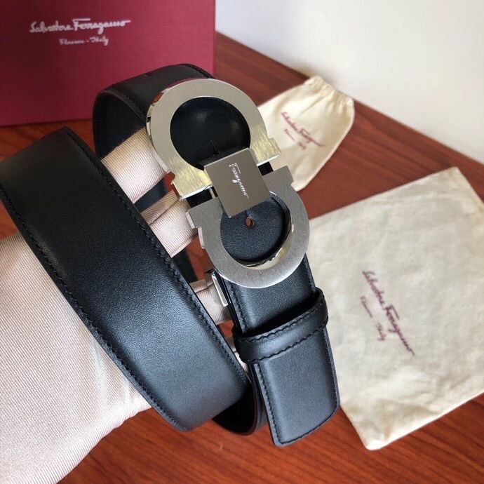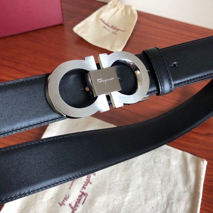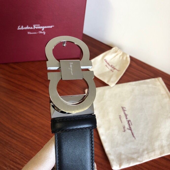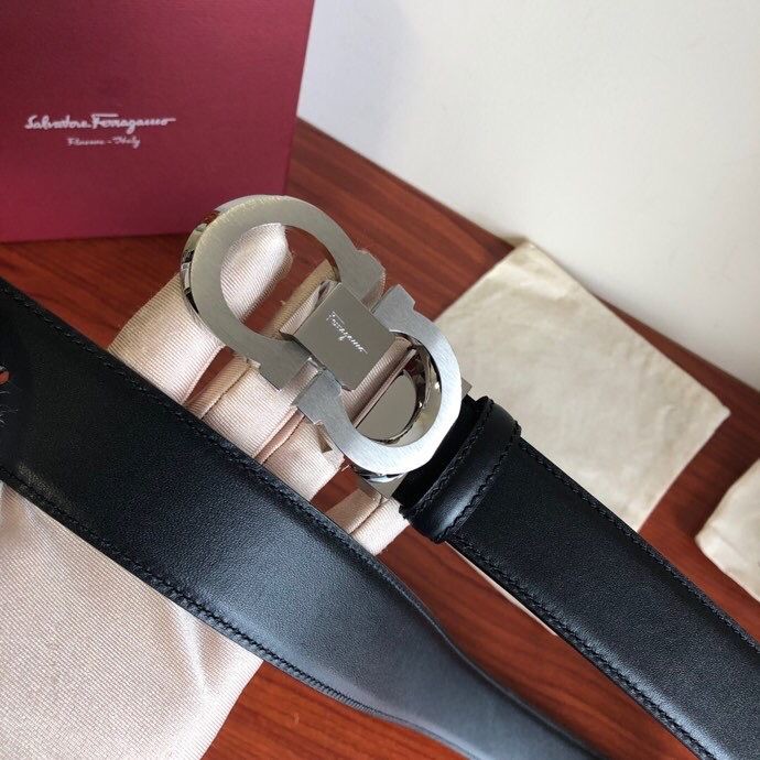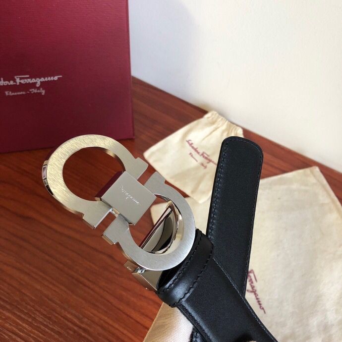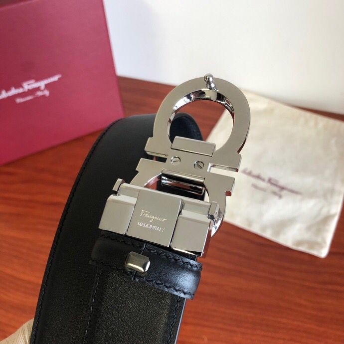 Ferragamo Men s 3.5cm stainless steel beveled metal buckle cowhide belt