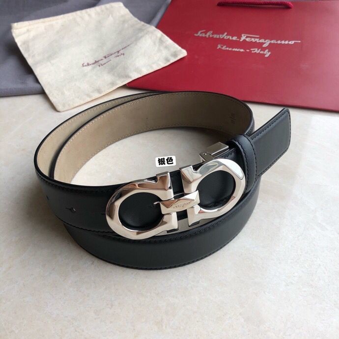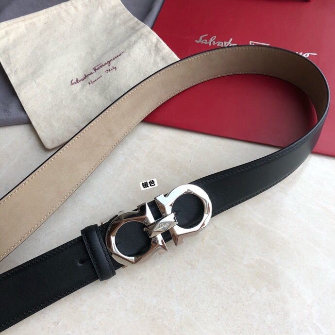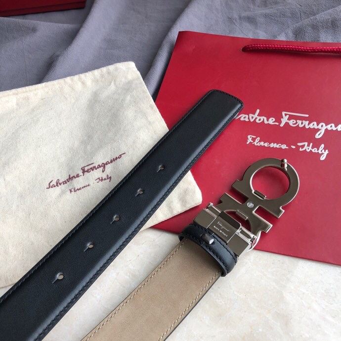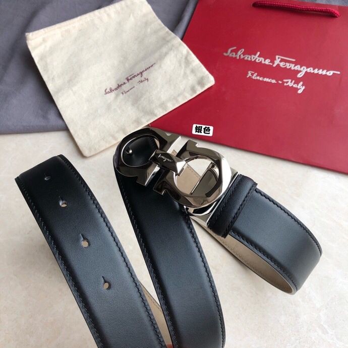 Ferragamo Men s 3.5cm Rhombus Faceted Metal Buckle Cowhide Belt