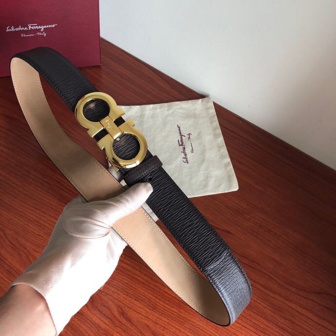 Ferragamo Cowhide cross pattern men s 3.5cm buckle belt
