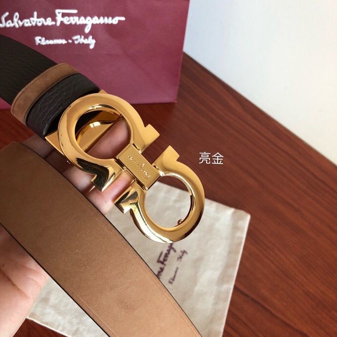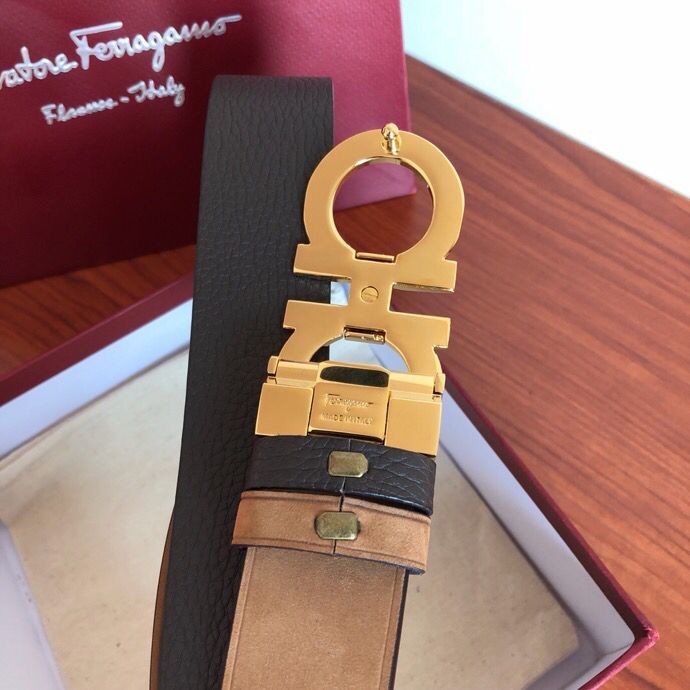 Ferragamo Men s 3.5cm leather belt with metal buckle