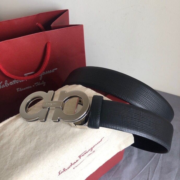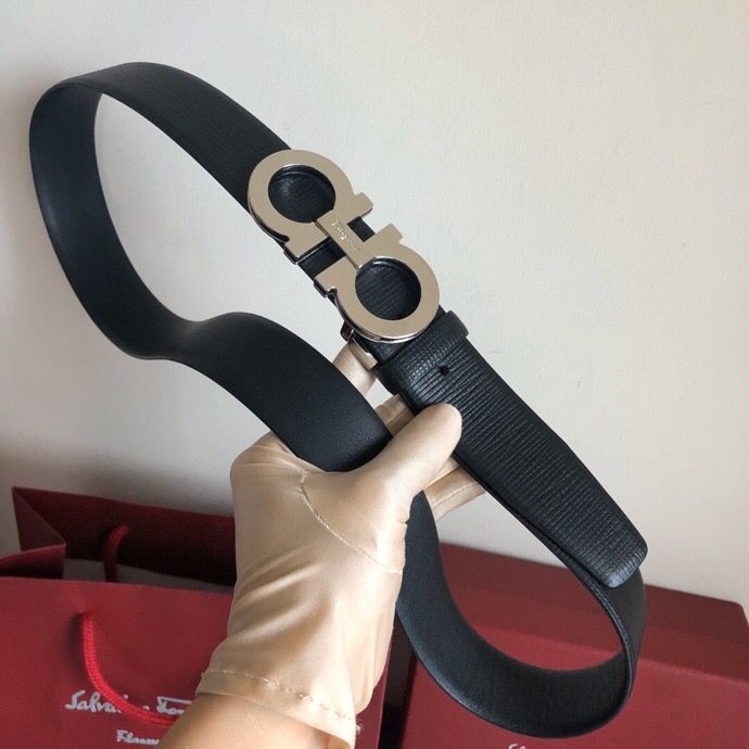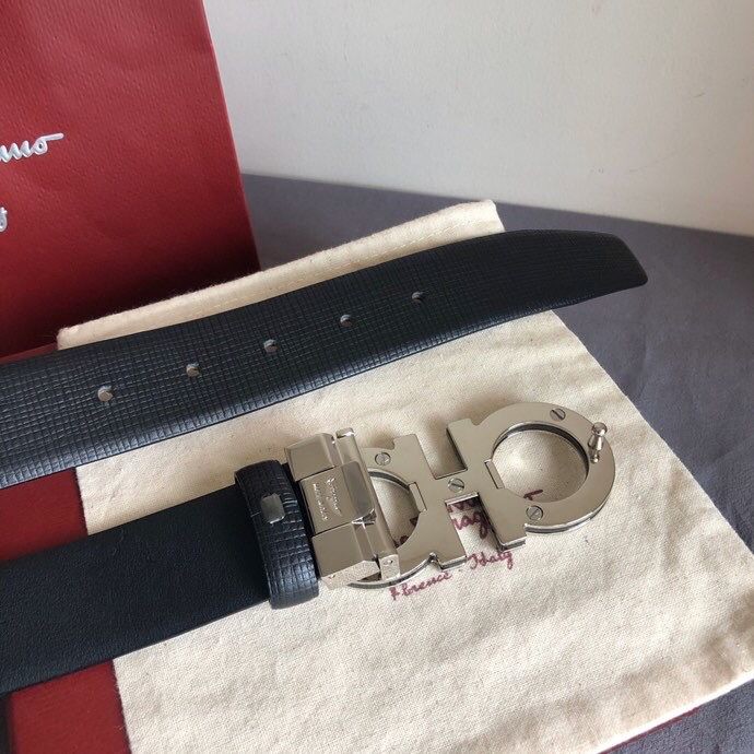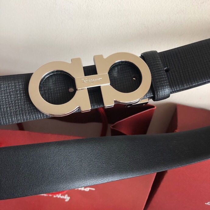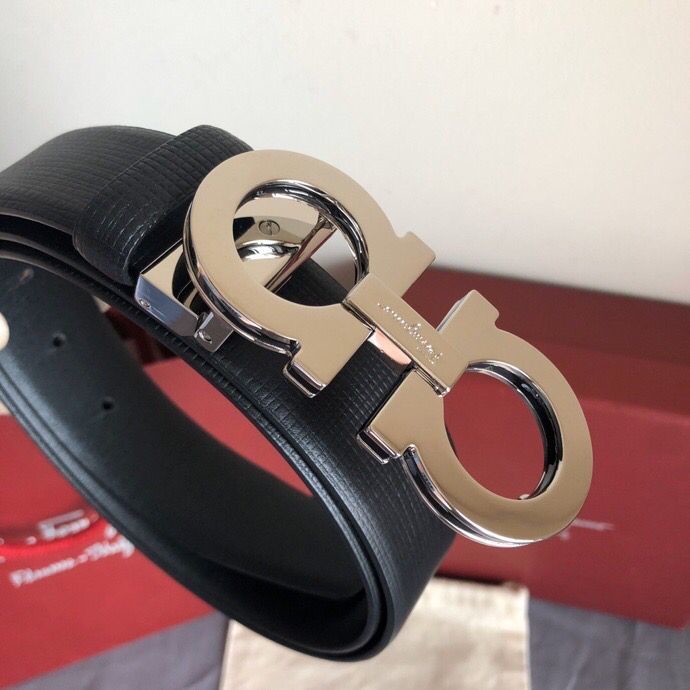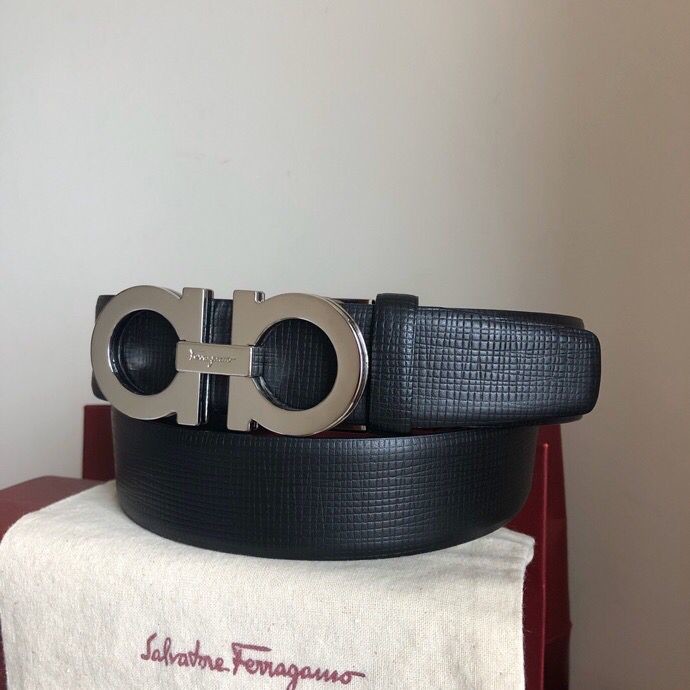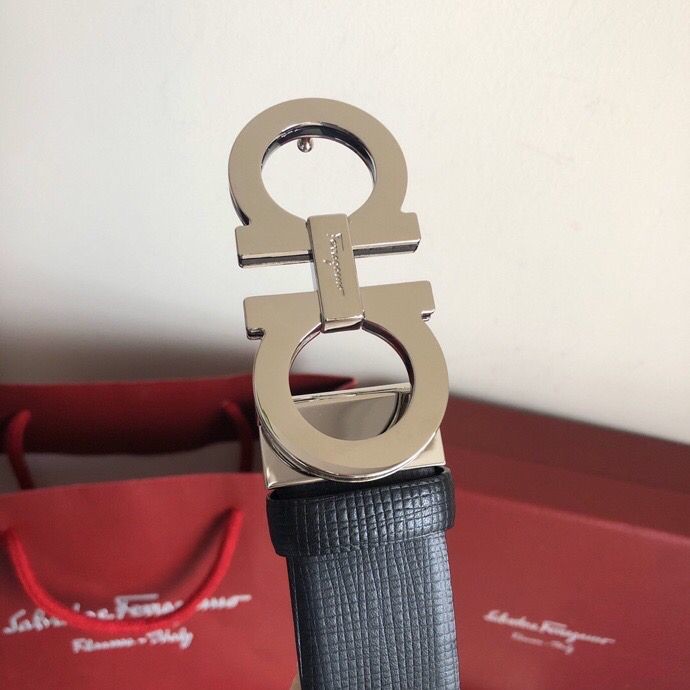 Ferragamo Men s 3.5cm exquisite multi-layer metal buckle leather toothpick pattern belt