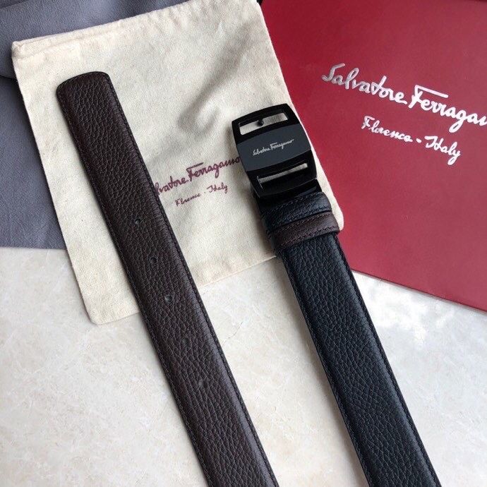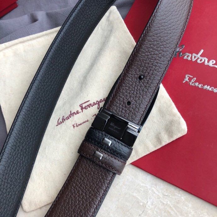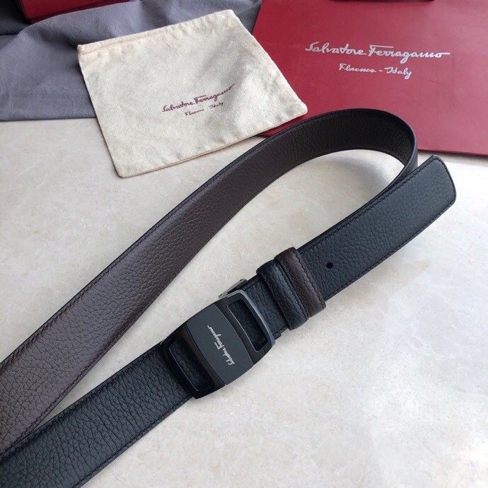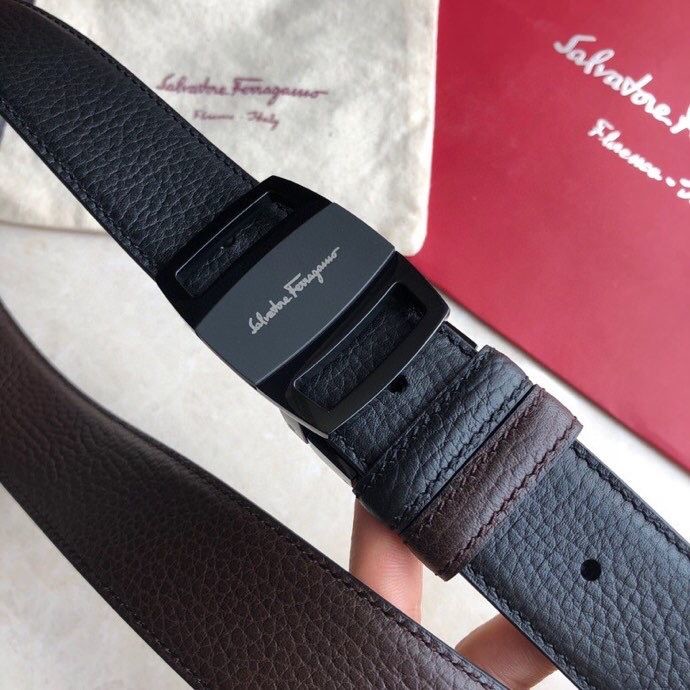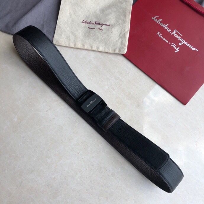 Ferragamo Men s 3.5cm Leather Reversible Belt with Stainless Steel Metal Buckle