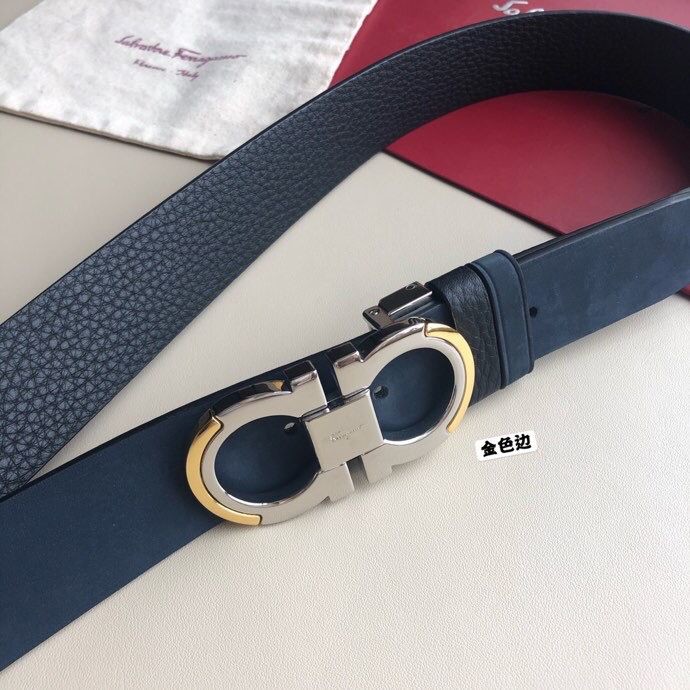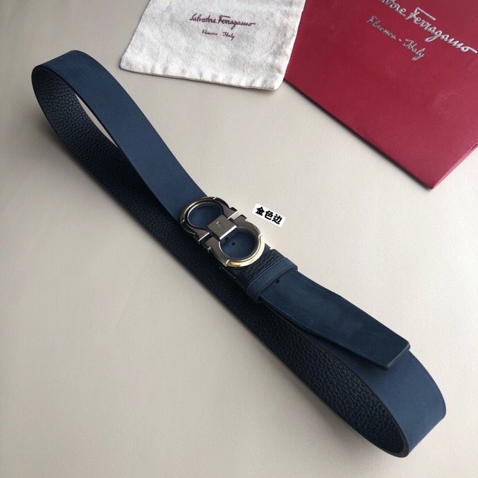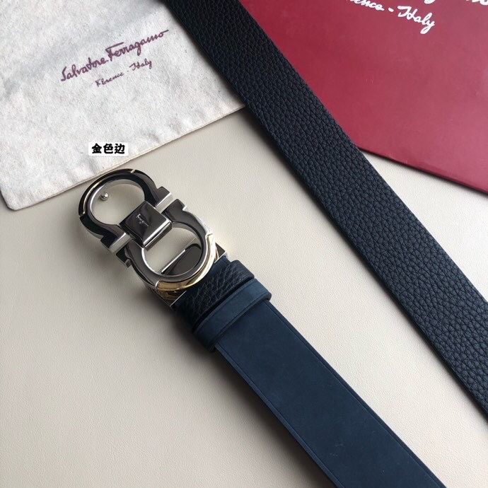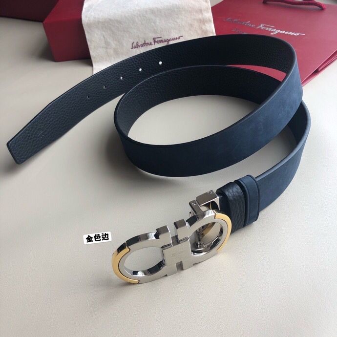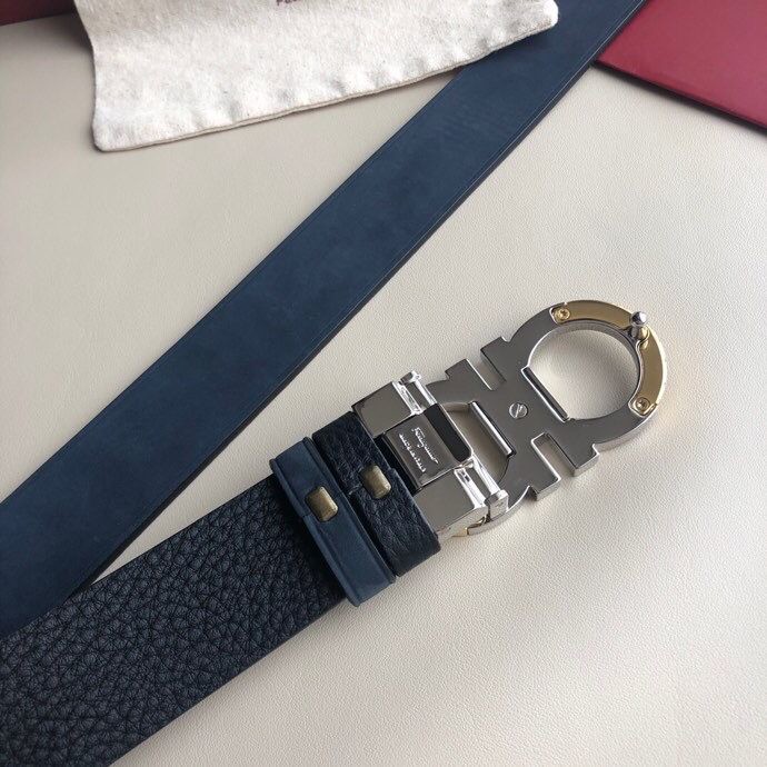 Ferragamo 3.5cm Gancio Metal Buckle Leather Suede Belt