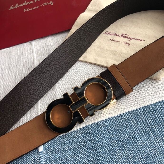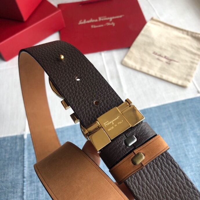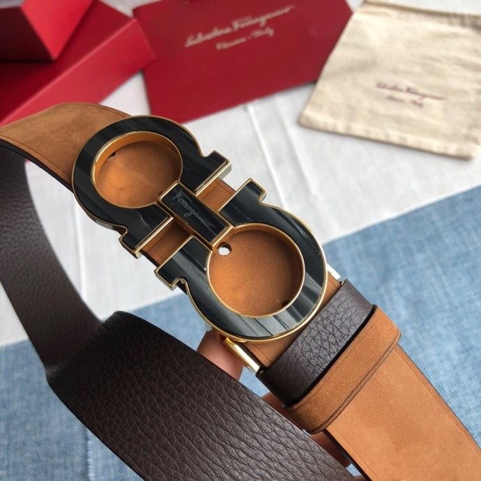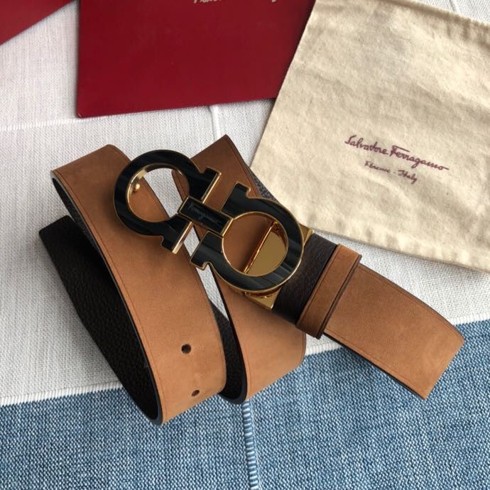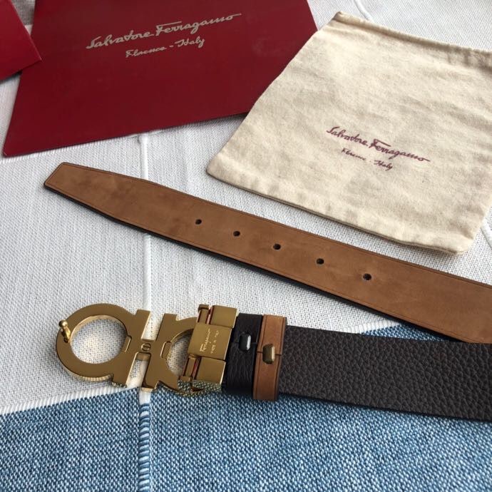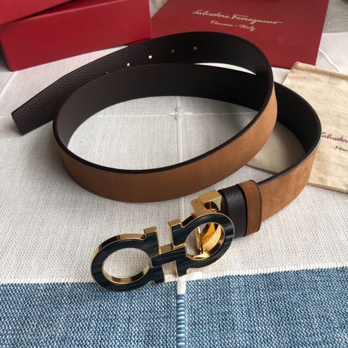 Ferragamo Men s 3.5cm Stainless Steel Gancini Metal Buckle Cowhide Suede Belt