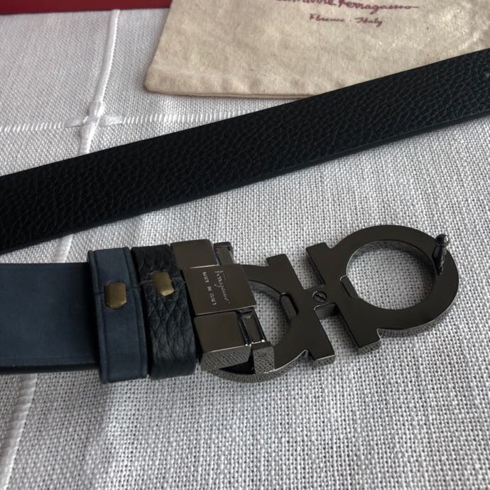 Ferragamo Men s 3.5cm Stainless Steel Gancini Metal Buckle Cowhide Suede Belt