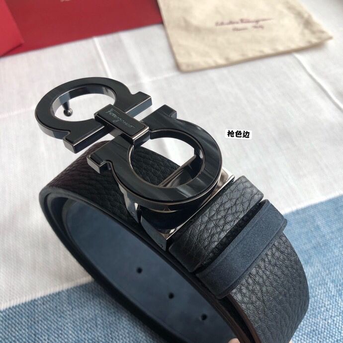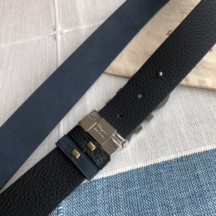 Ferragamo Men s 3.5cm Stainless Steel Gancini Metal Buckle Cowhide Suede Belt