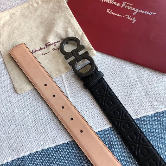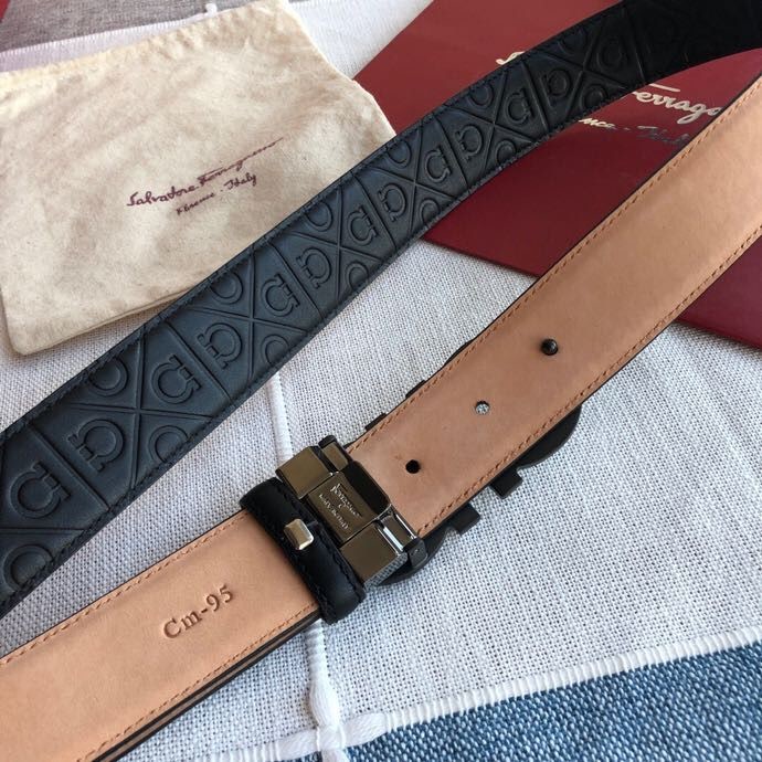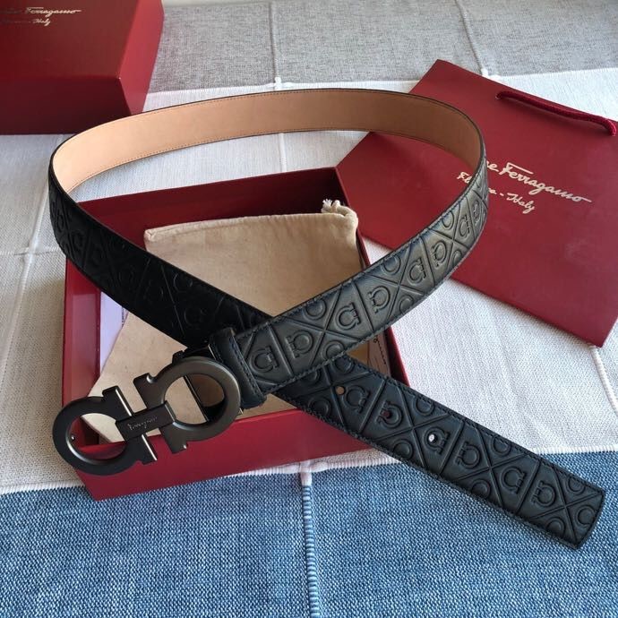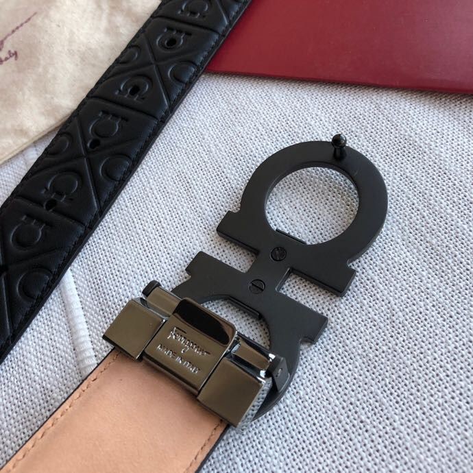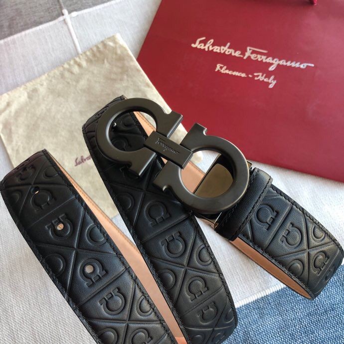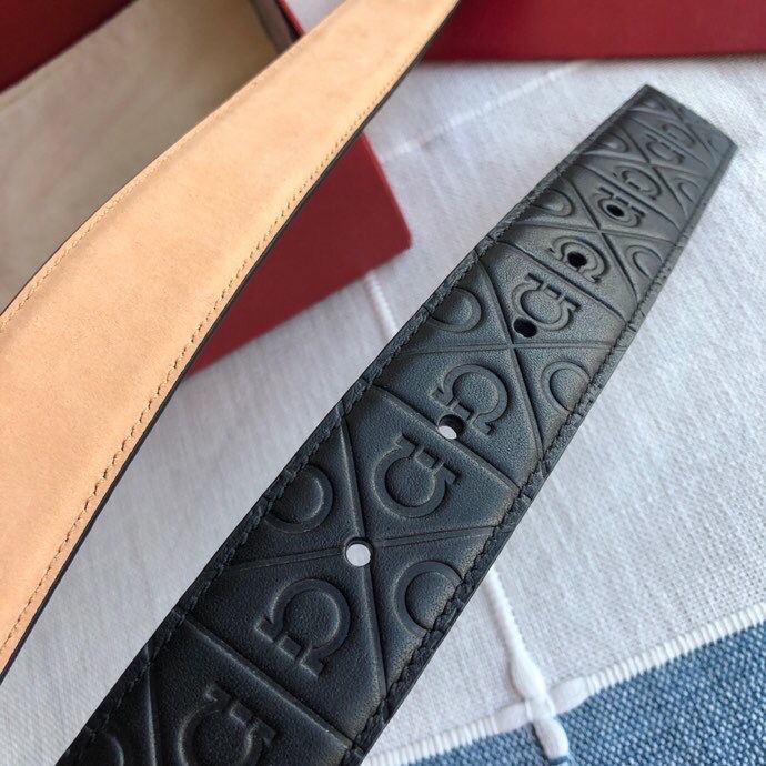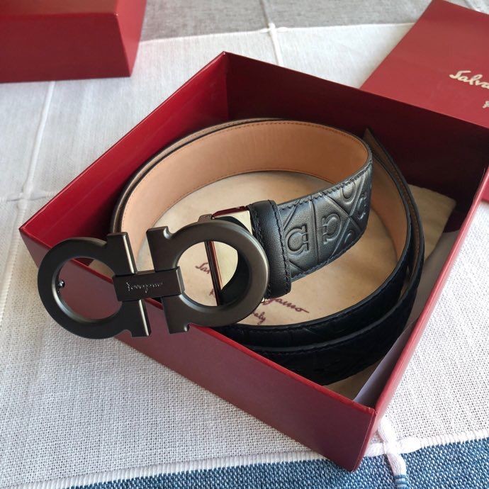 Ferragamo Men s 3.5cm exquisite horseshoe metal buckle cowhide embossed bottom belt