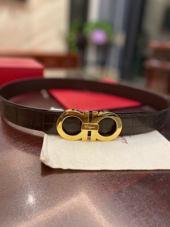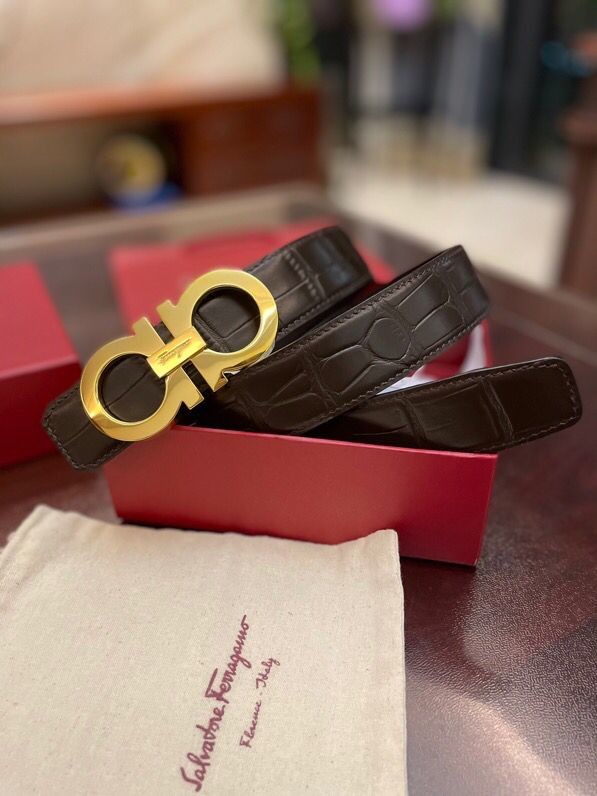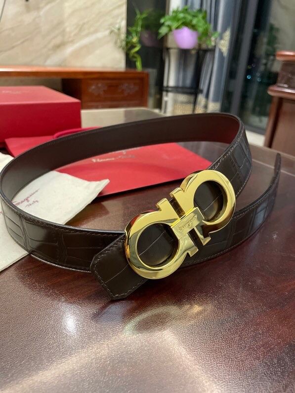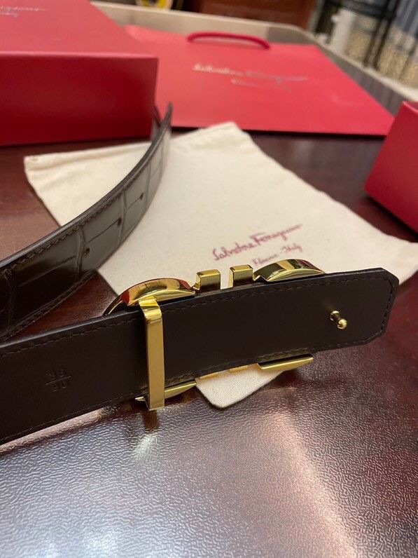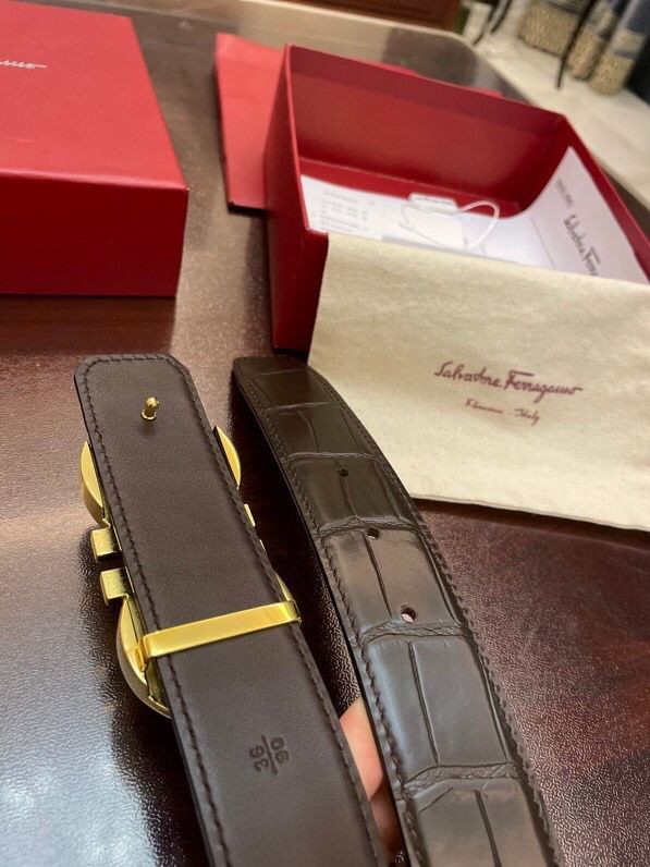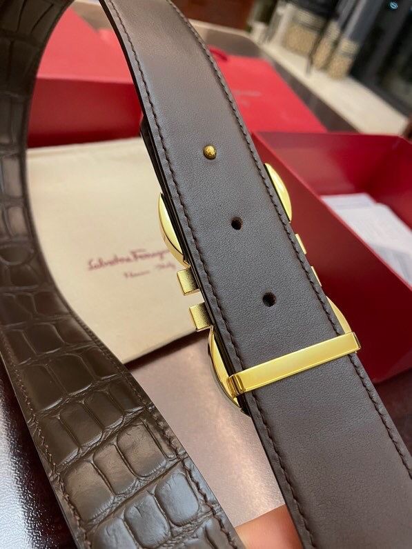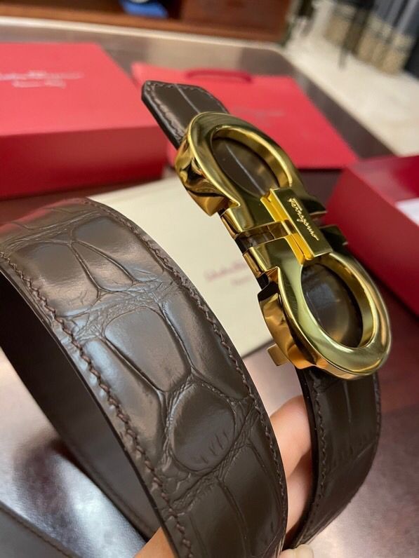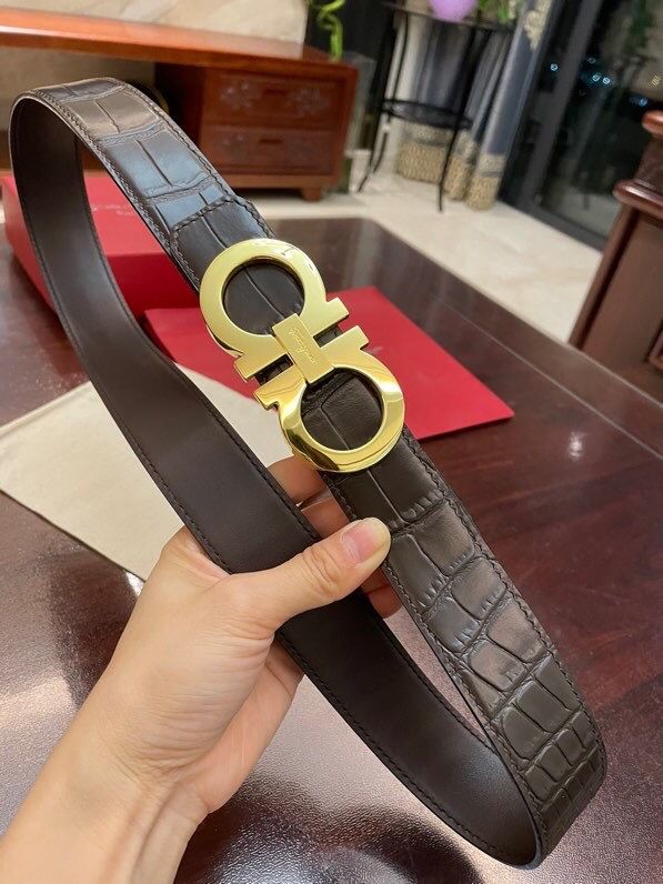 Ferragamo Cowhide embossed crocodile pattern men s belt 3.5cm