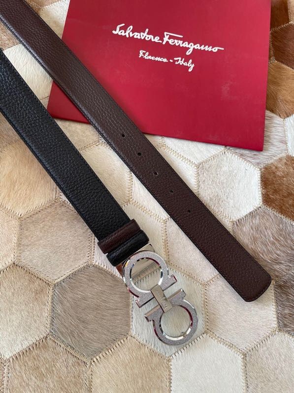 Ferragamo Men s 3.5cm stainless steel metal buckle cowhide leather leather belt