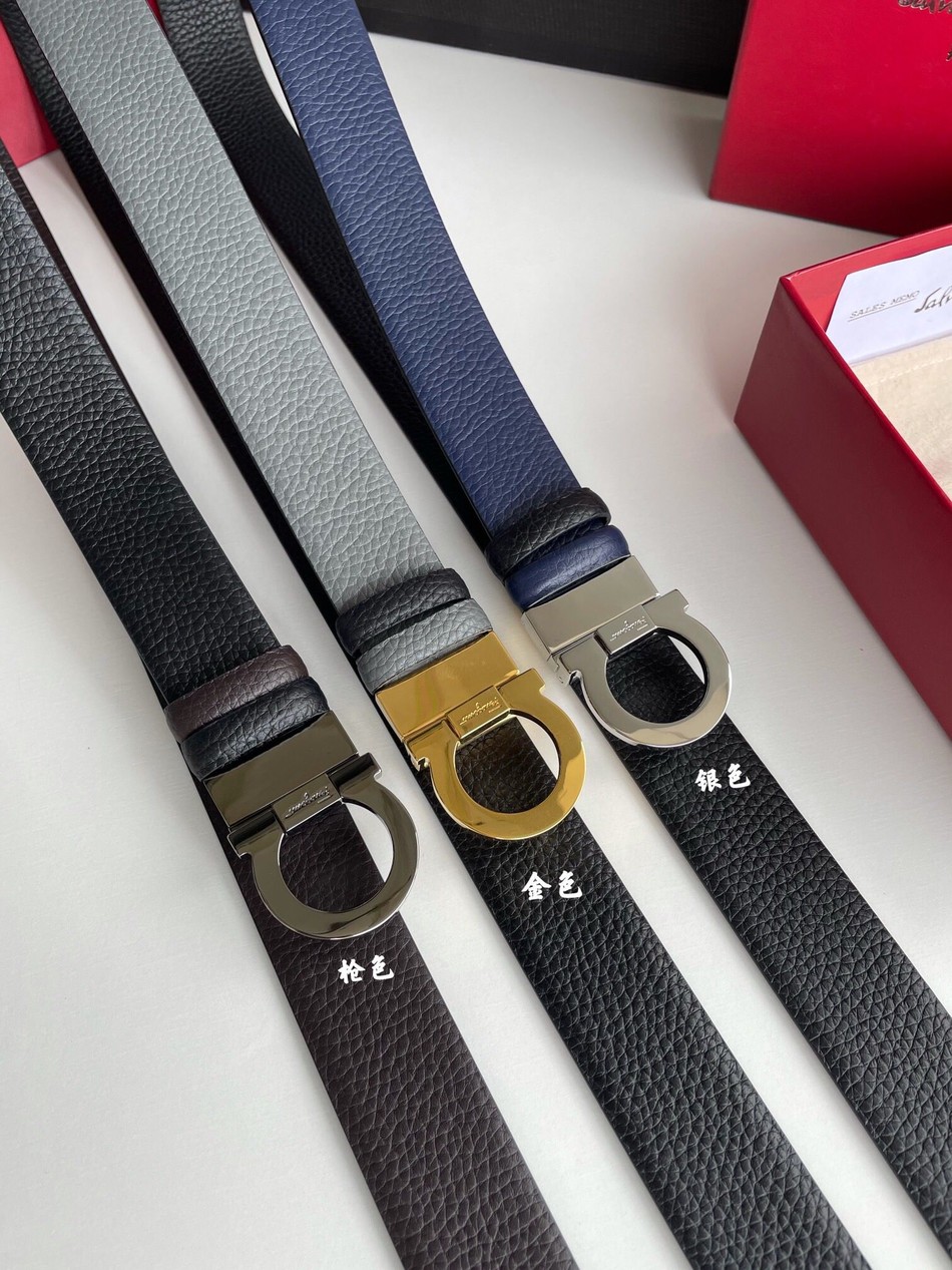 Salvatore Ferragamo Men s 3.5cm Semicircle Horseshoe Metal Buckle Cowhide Reversible Belt