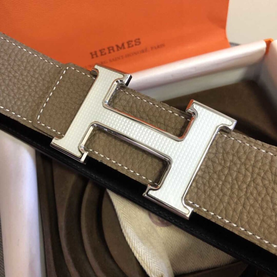Hermes Men s Reversible Leather Belt 38mm with Stainless Steel Buckle