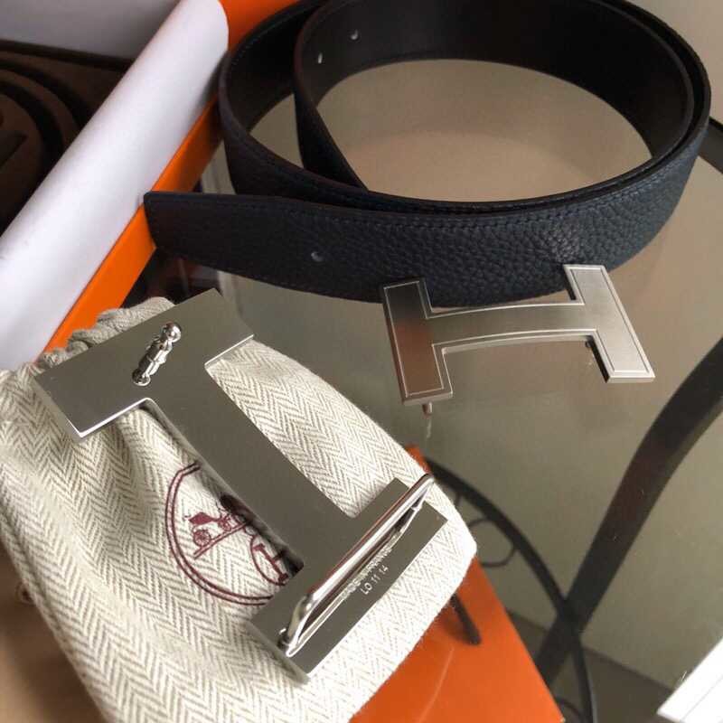 Hermes H Metal Buckle Men s Reversible Leather Belt 38mm