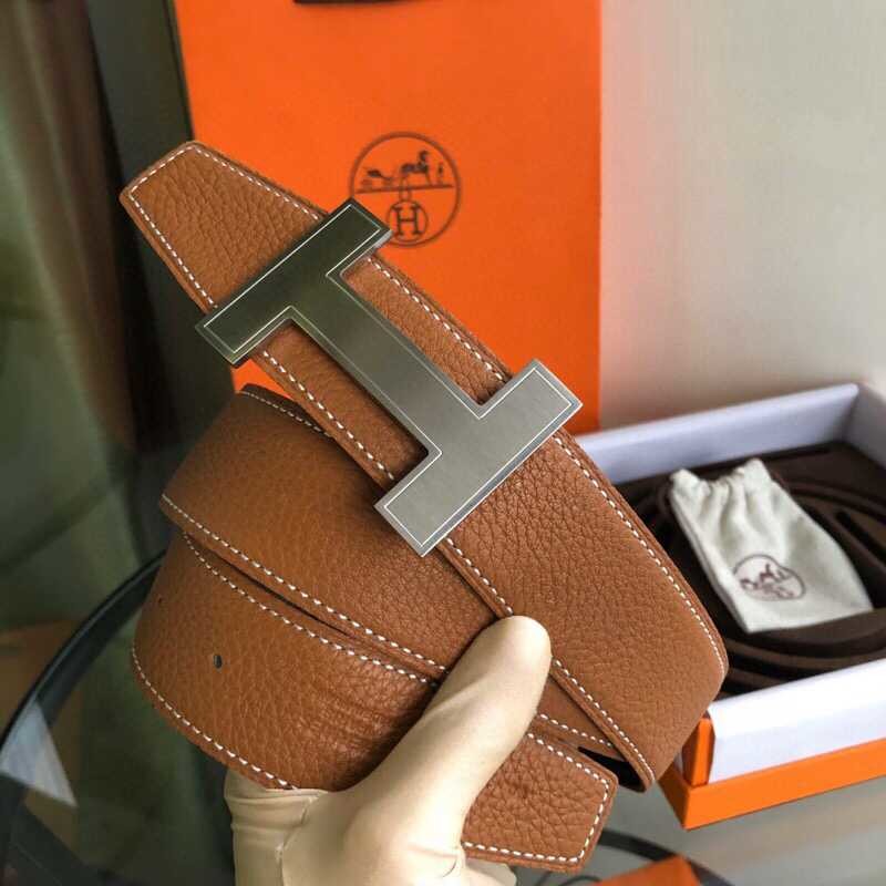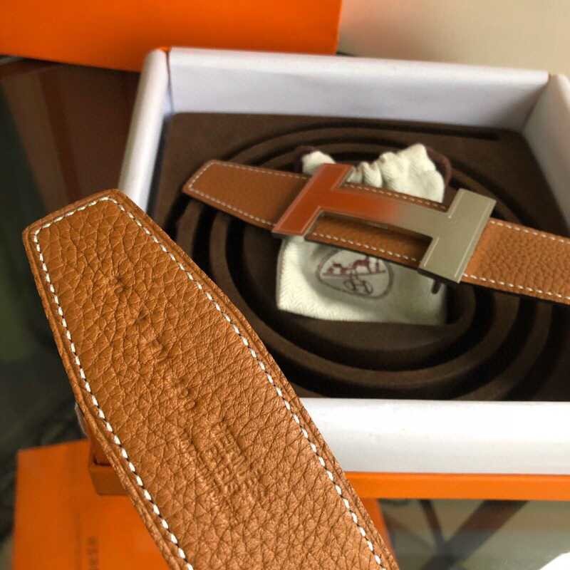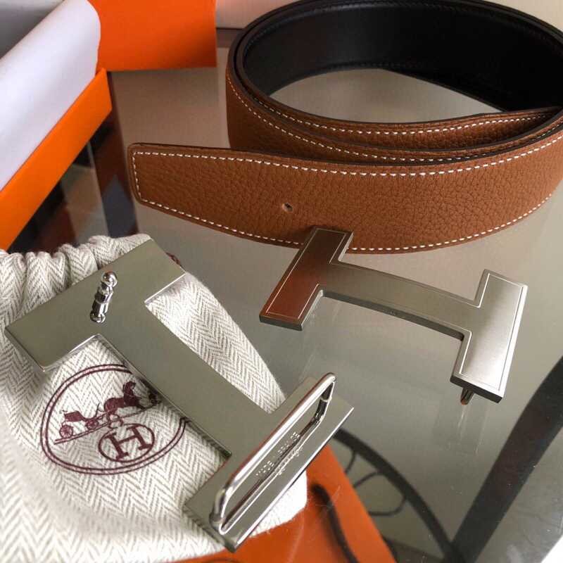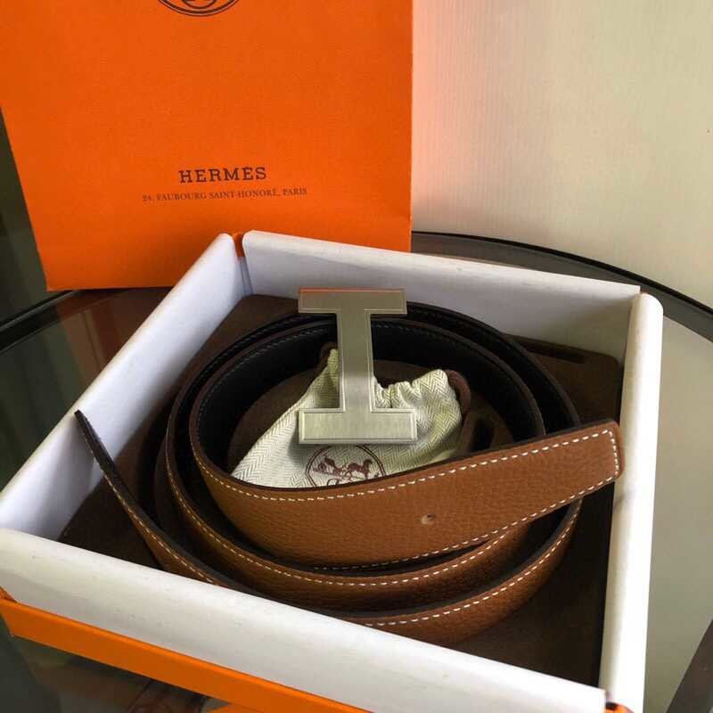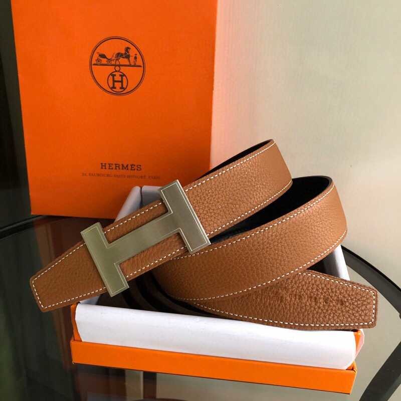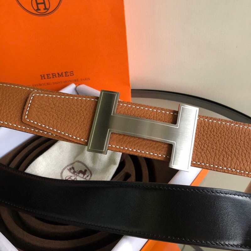 Hermes H Metal Buckle Men s Reversible Leather Belt 38mm