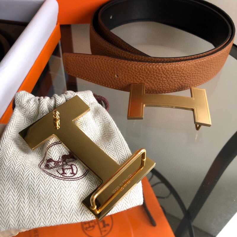 Hermes H Metal Buckle Men s Reversible Leather Belt 38mm