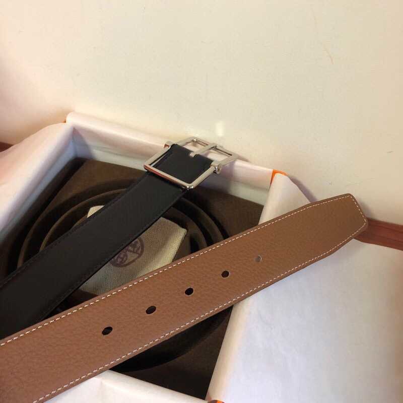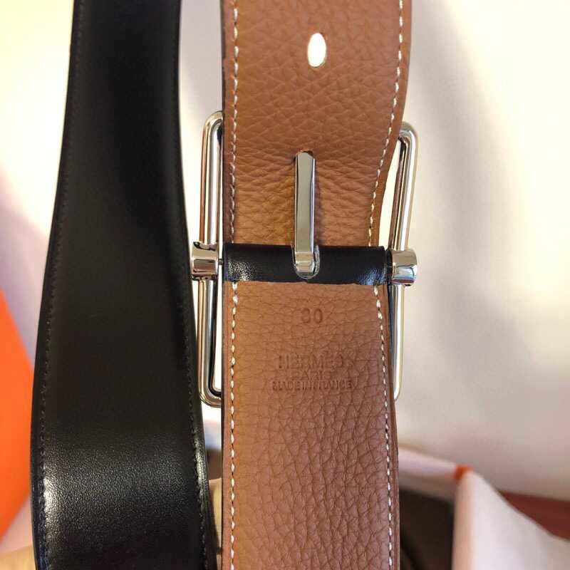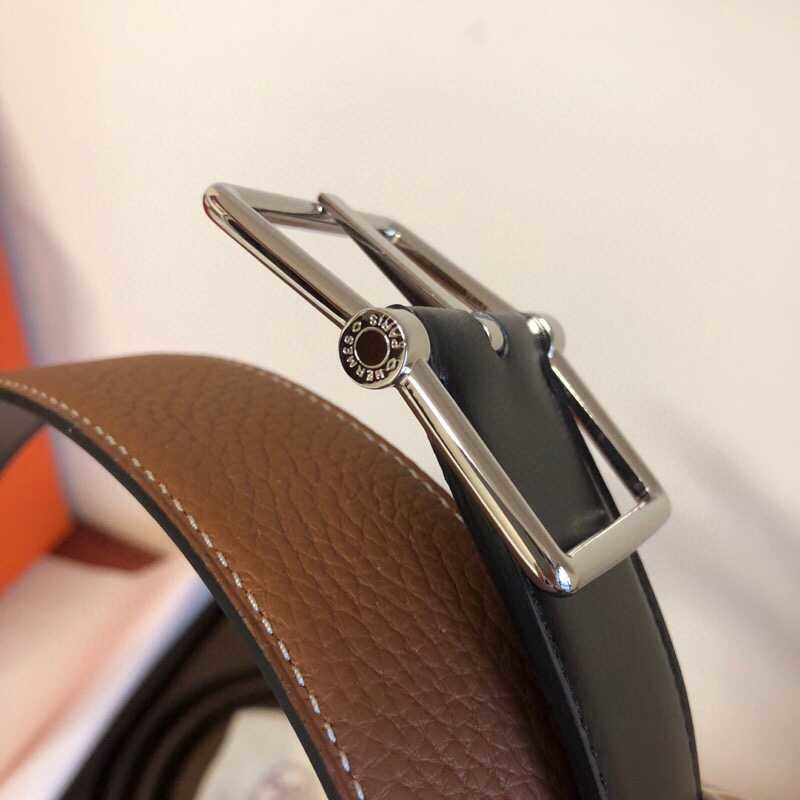 Hermes Fine Metal Buckle Cowhide 38mm Saddle Reversible Belt