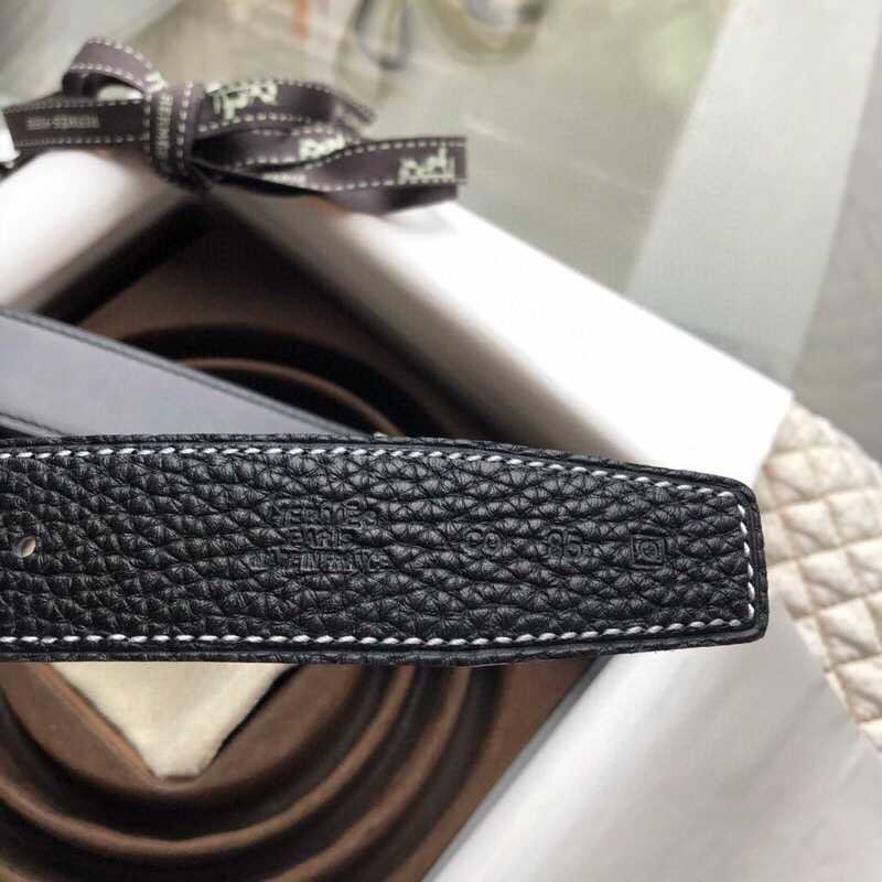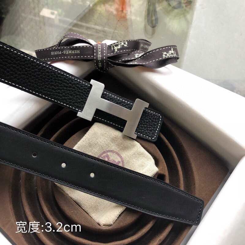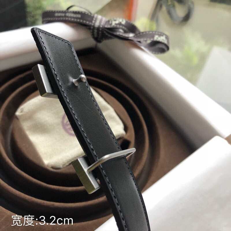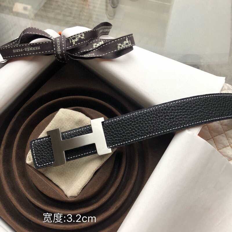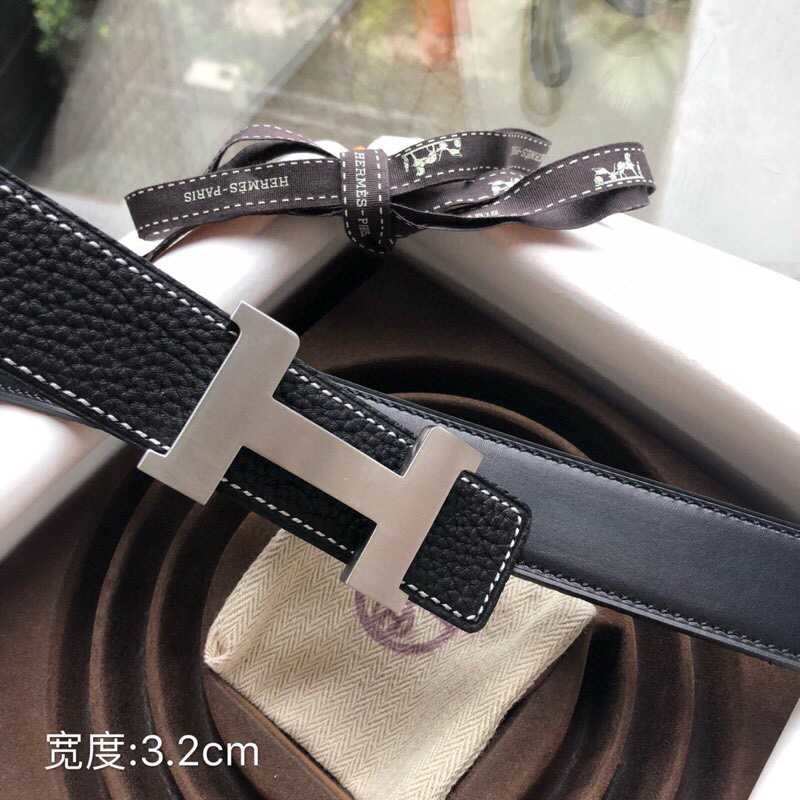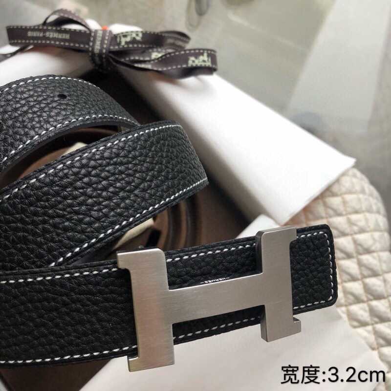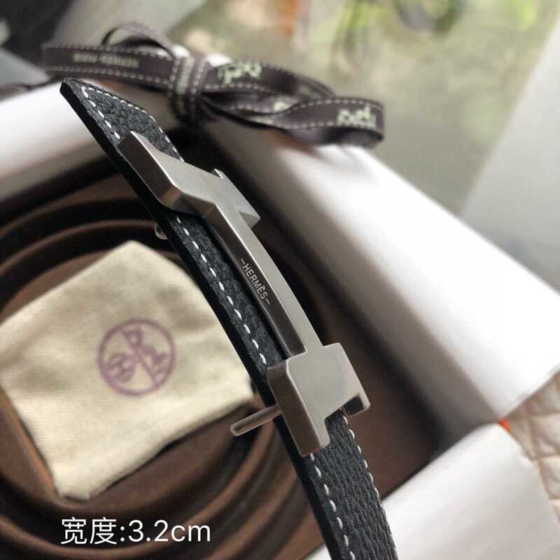Hermes Stainless steel four-corner buckle Reversible leather men s 3.2cm belt