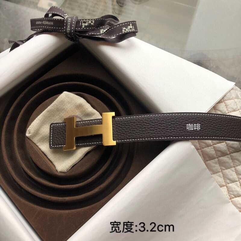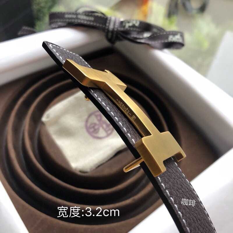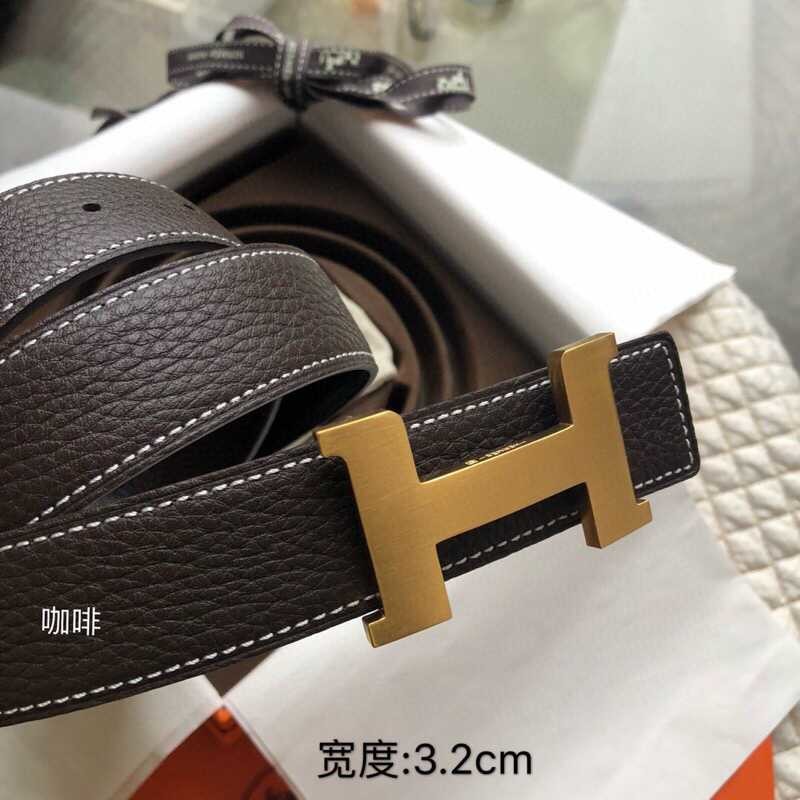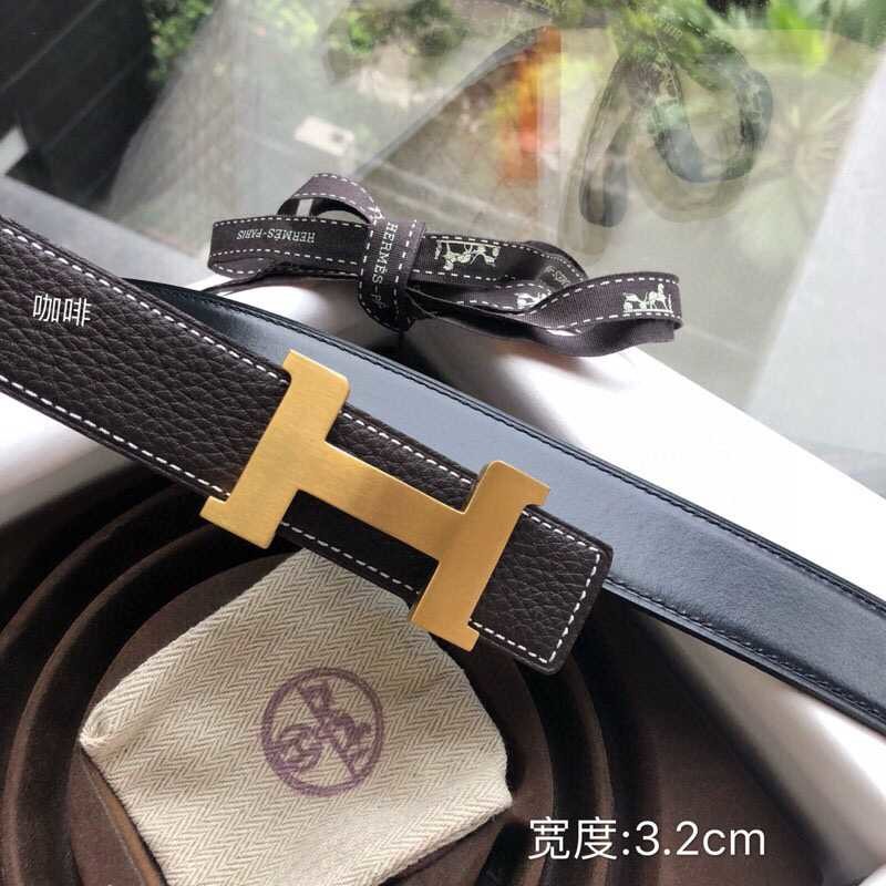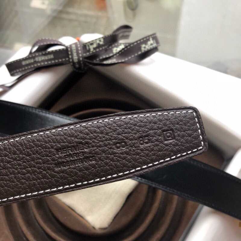 Hermes Stainless steel four-corner buckle Reversible leather men s 3.2cm belt