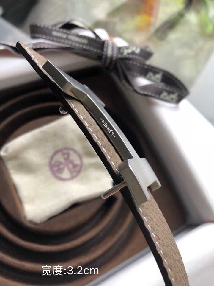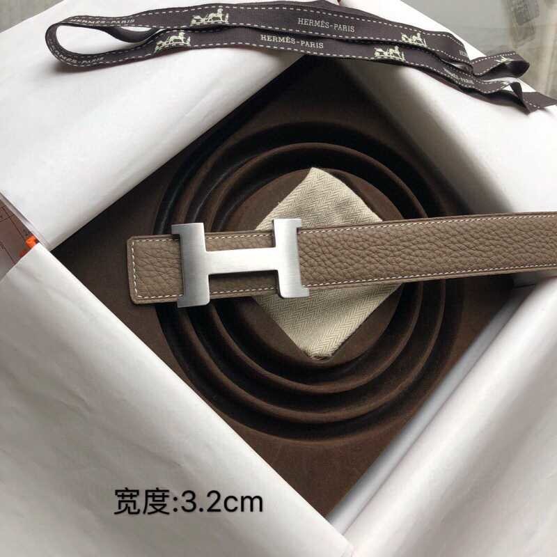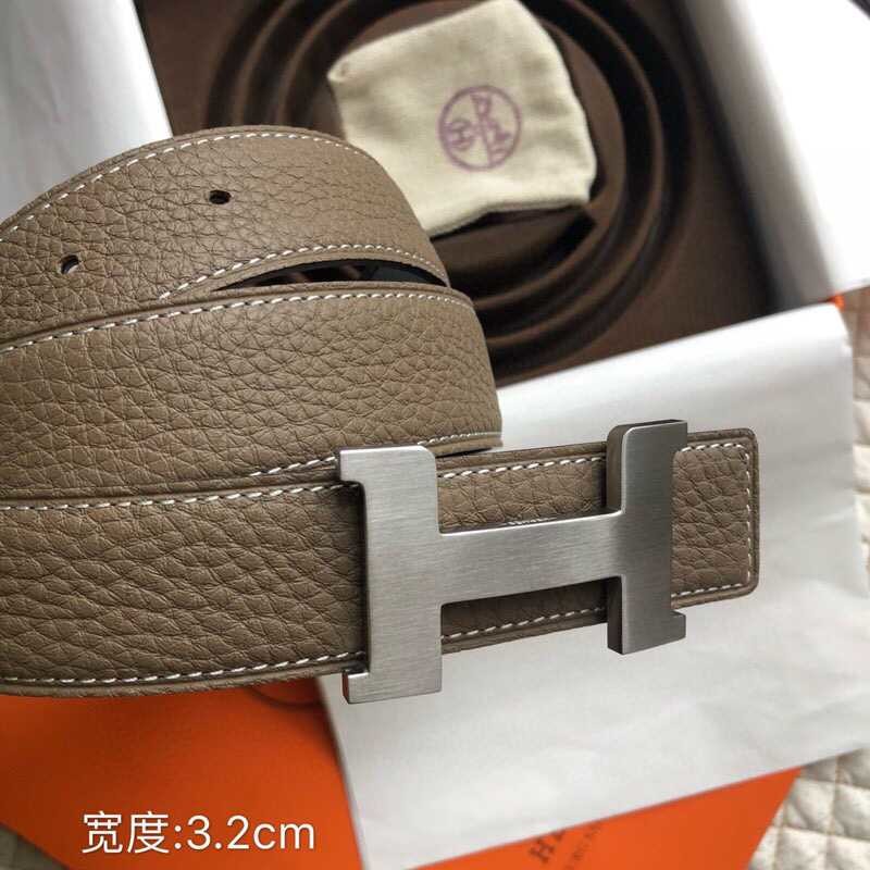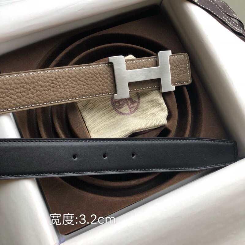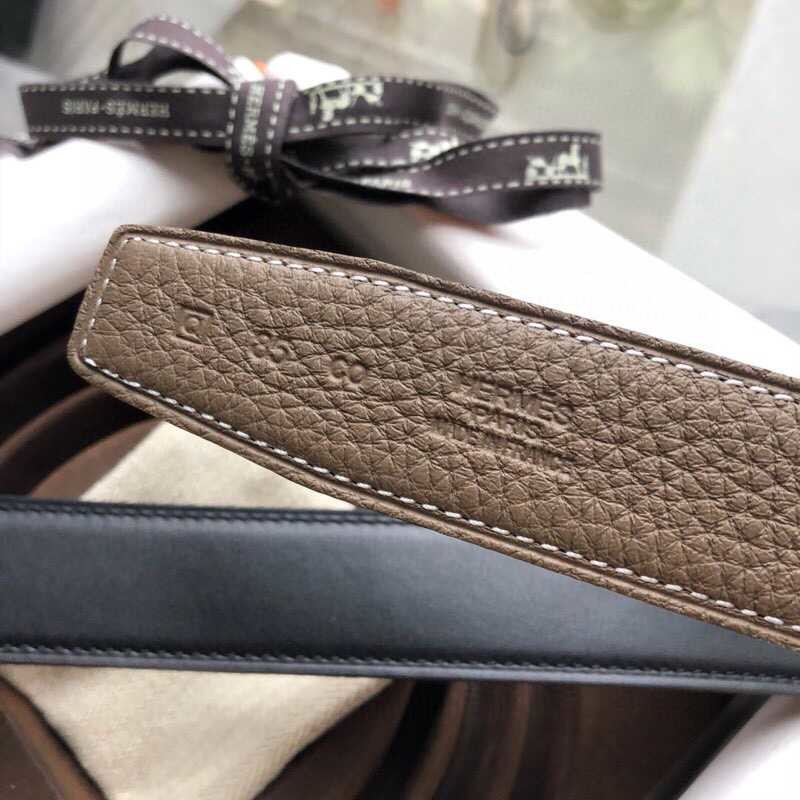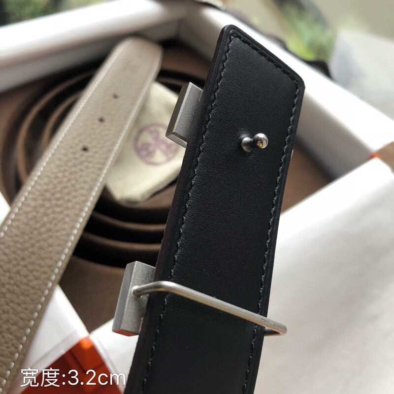 Hermes Stainless steel four-corner buckle Reversible leather men s 3.2cm belt