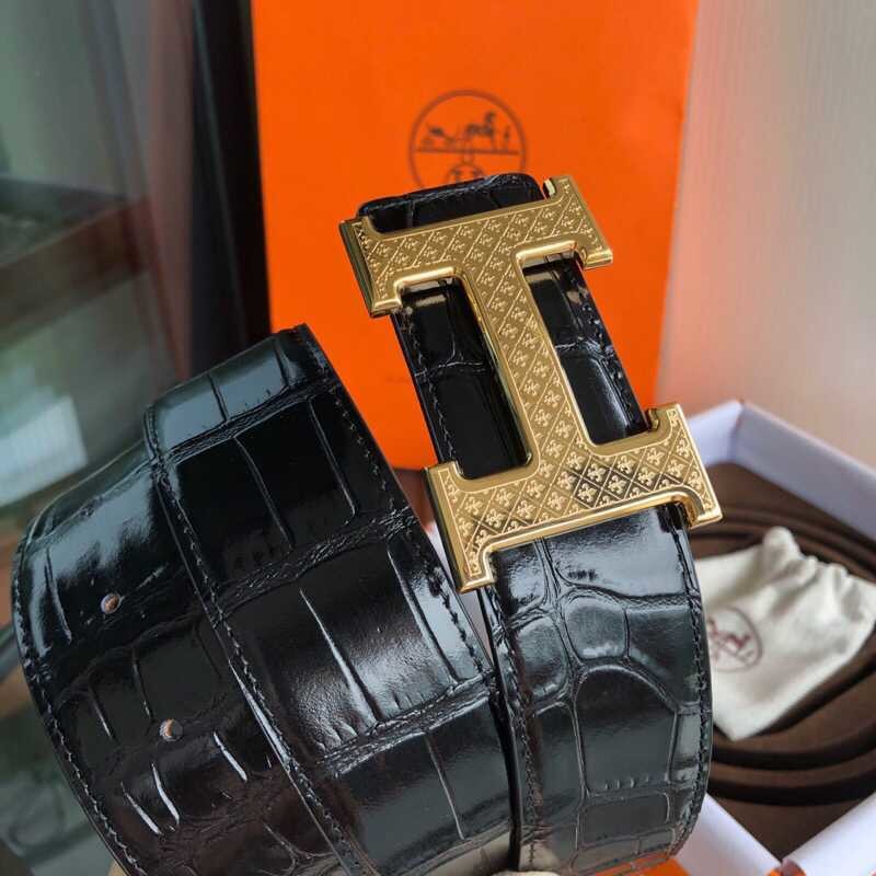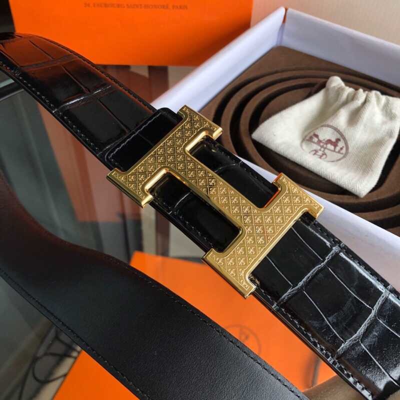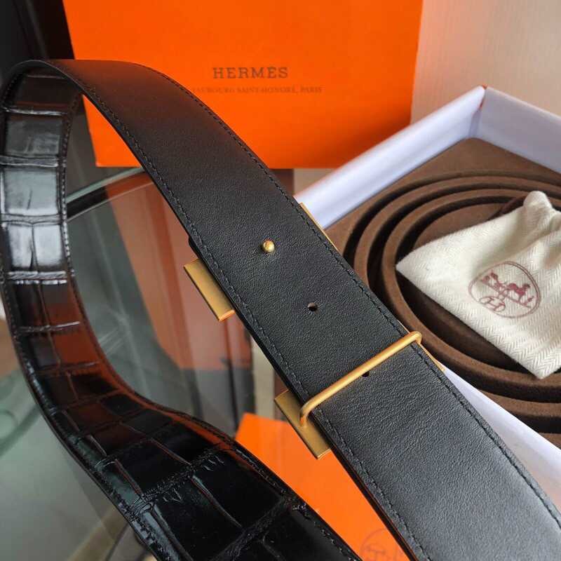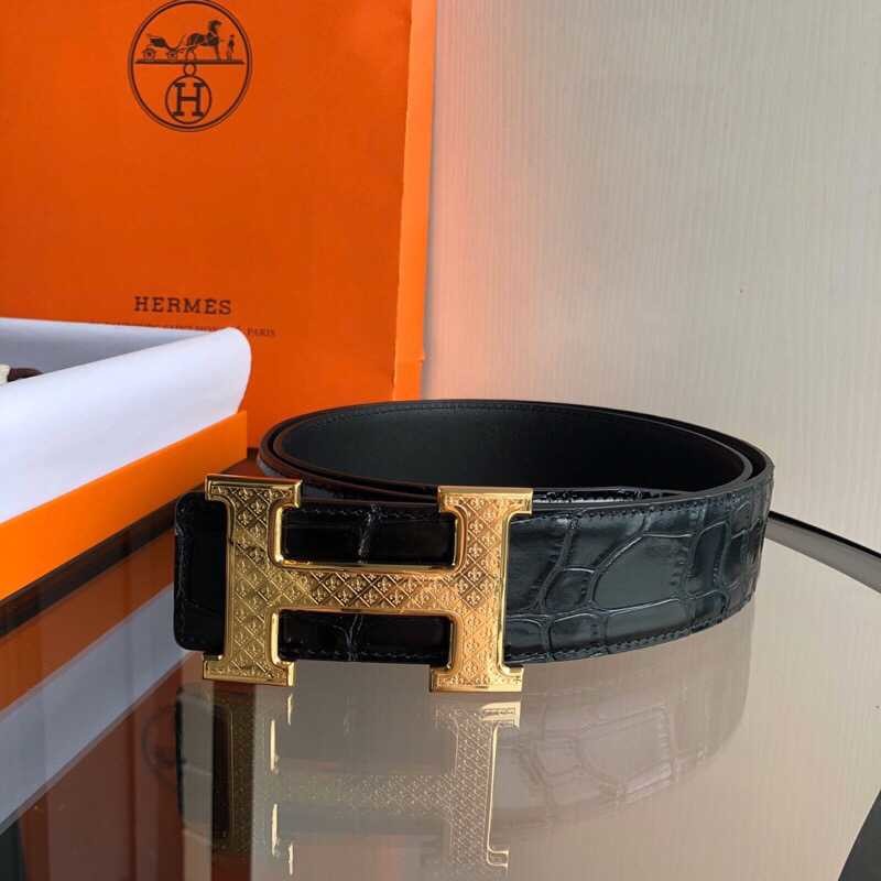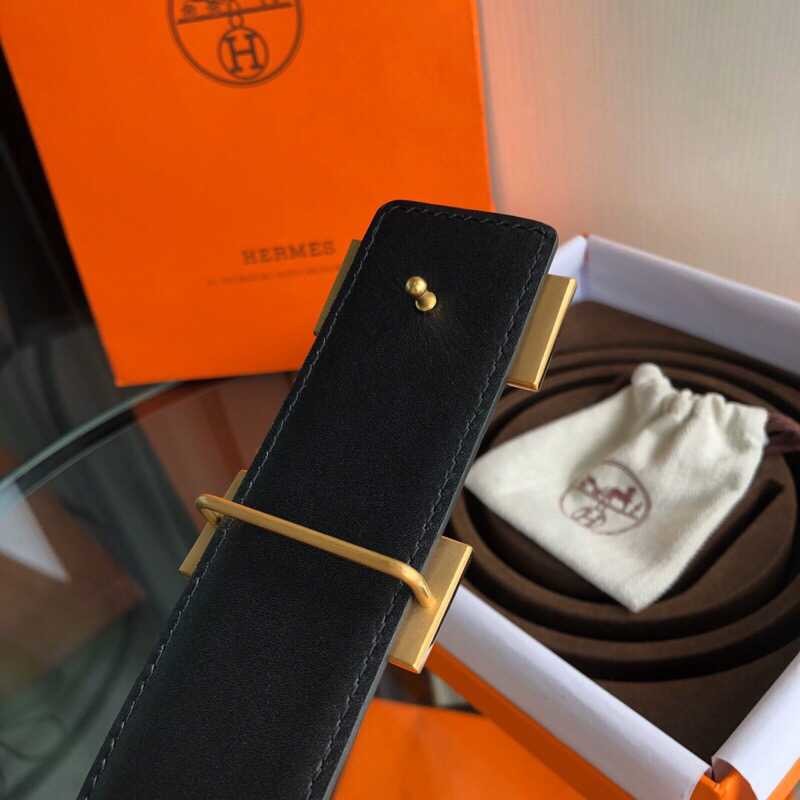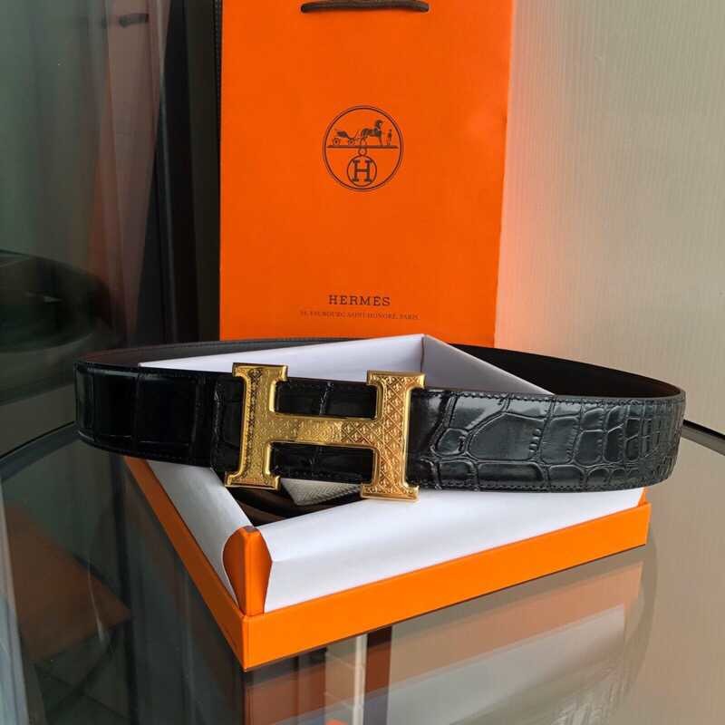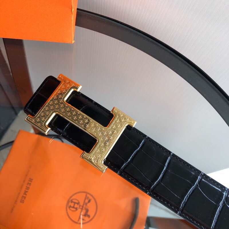 Hermes Stainless steel H pattern hanging buckle cowhide men s 3.8cm belt