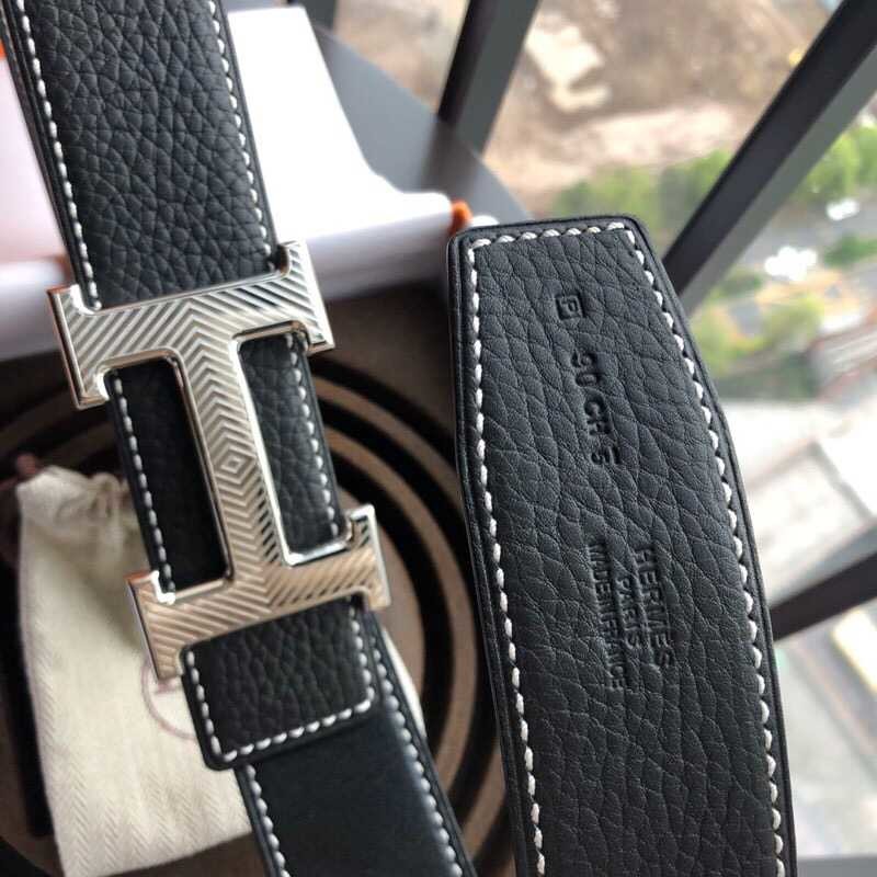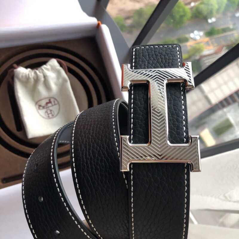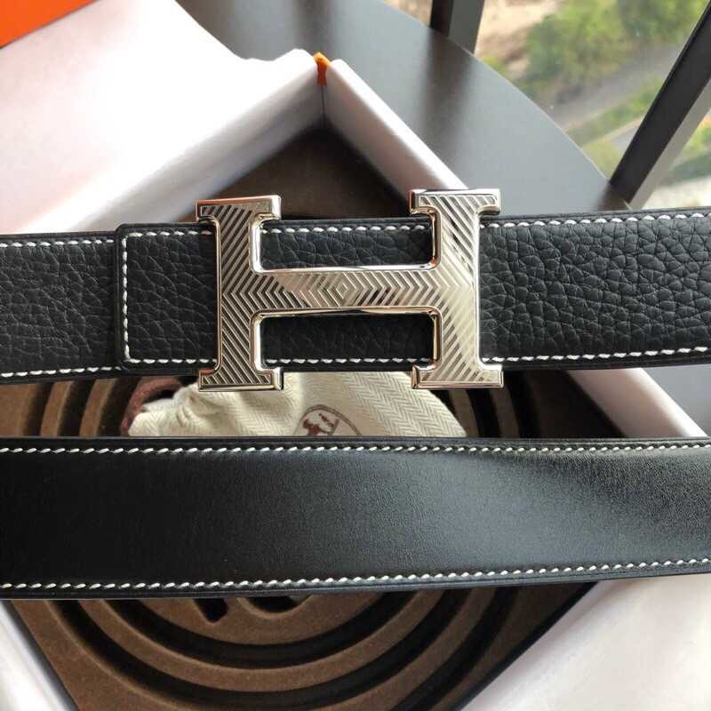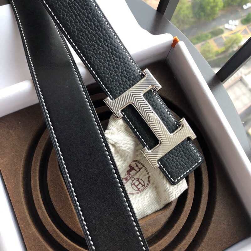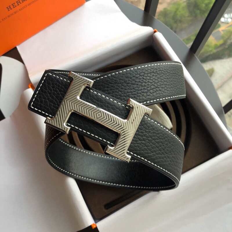 Hermes Stainless steel pattern hanging buckle 3.8cm men s belt