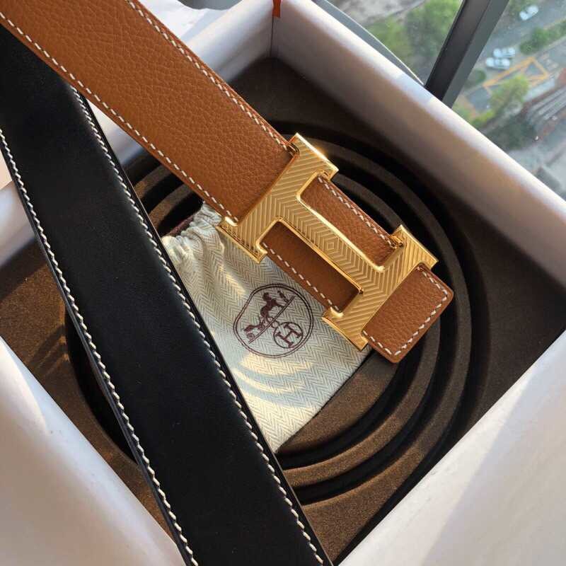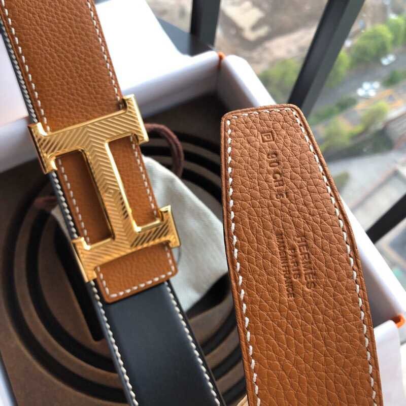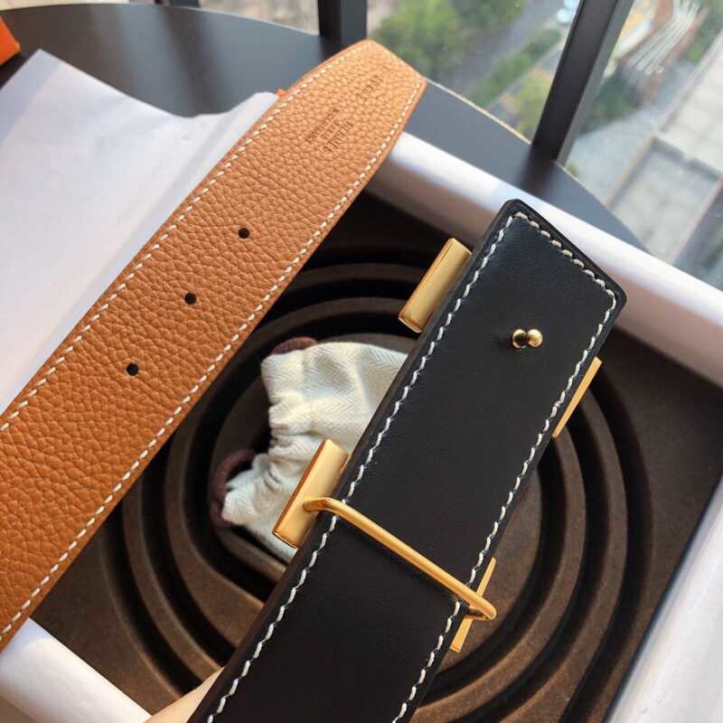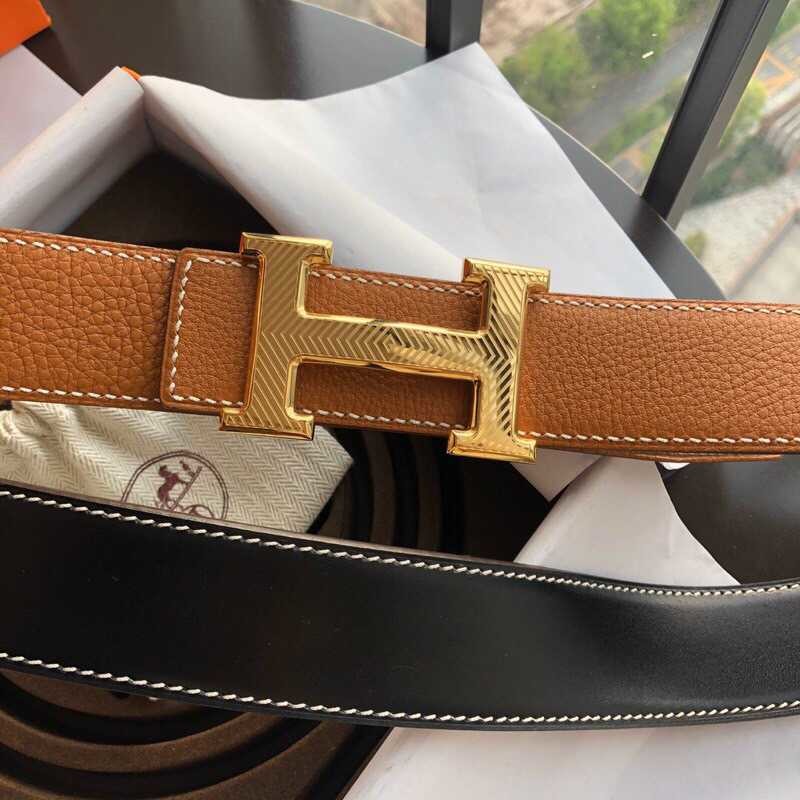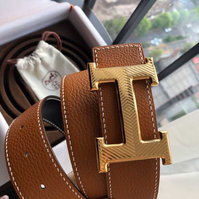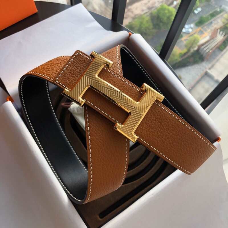 Hermes Stainless steel pattern hanging buckle 3.8cm men s belt