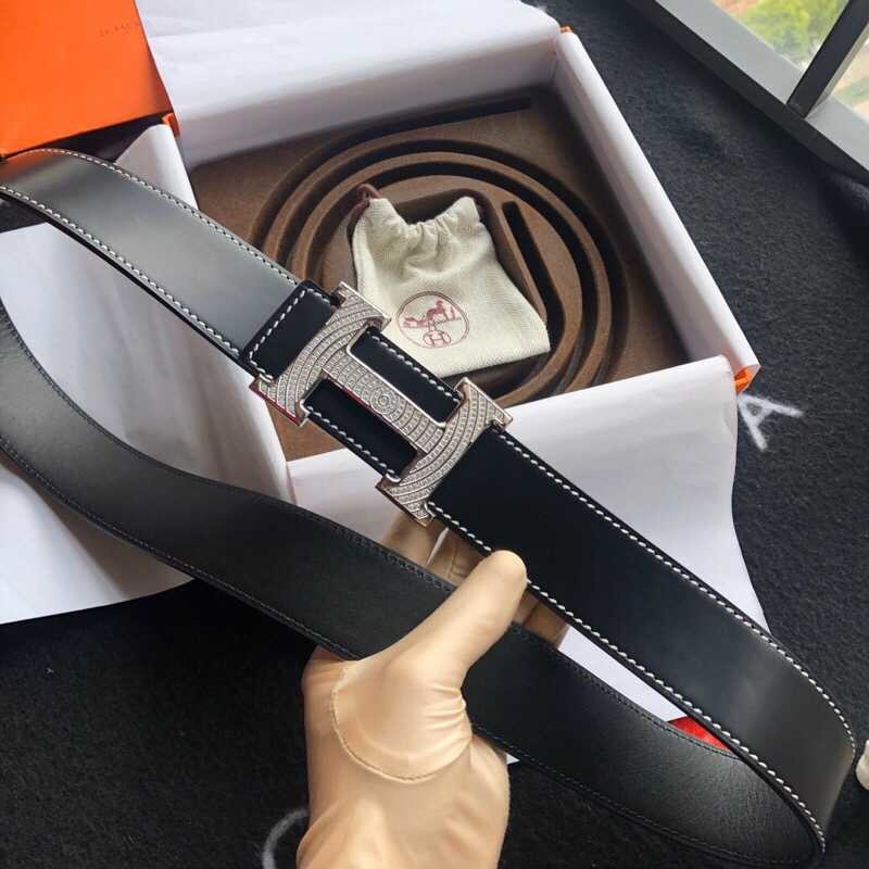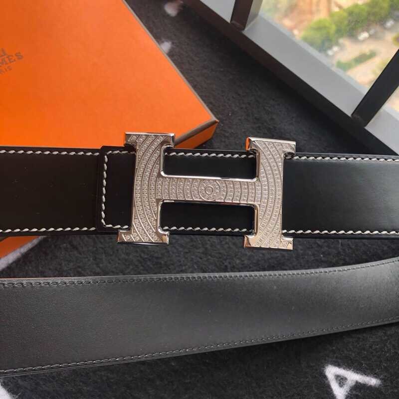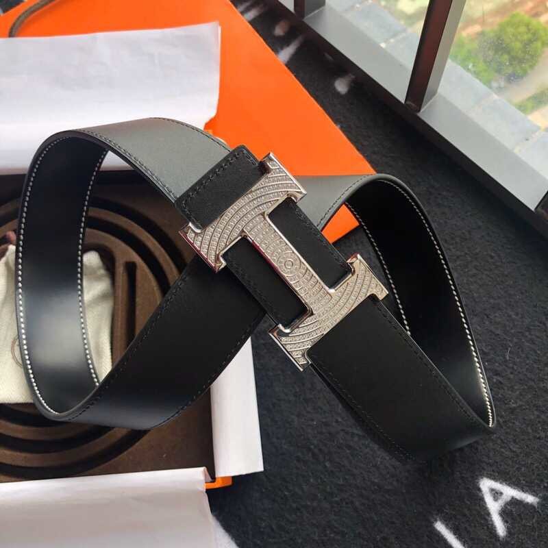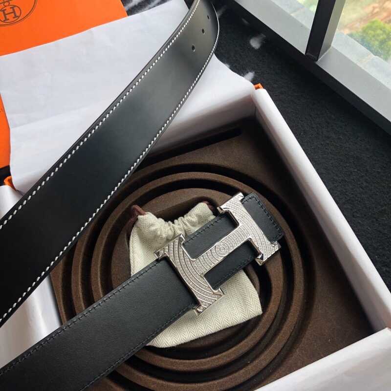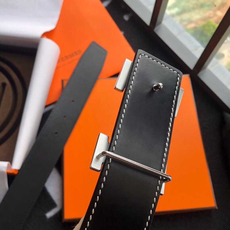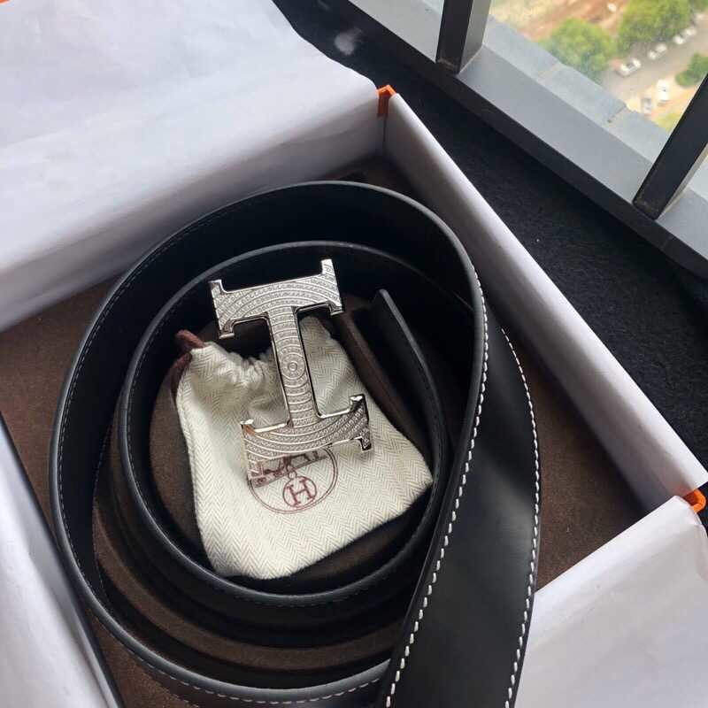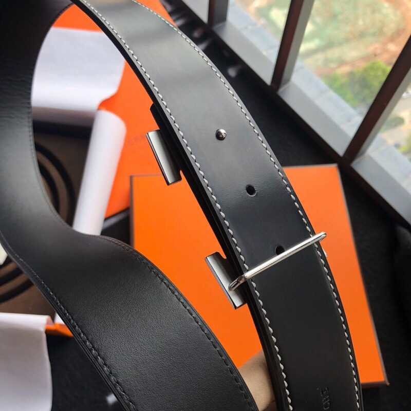 Hermes Stainless steel H buckle leather men s 3.8cm belt