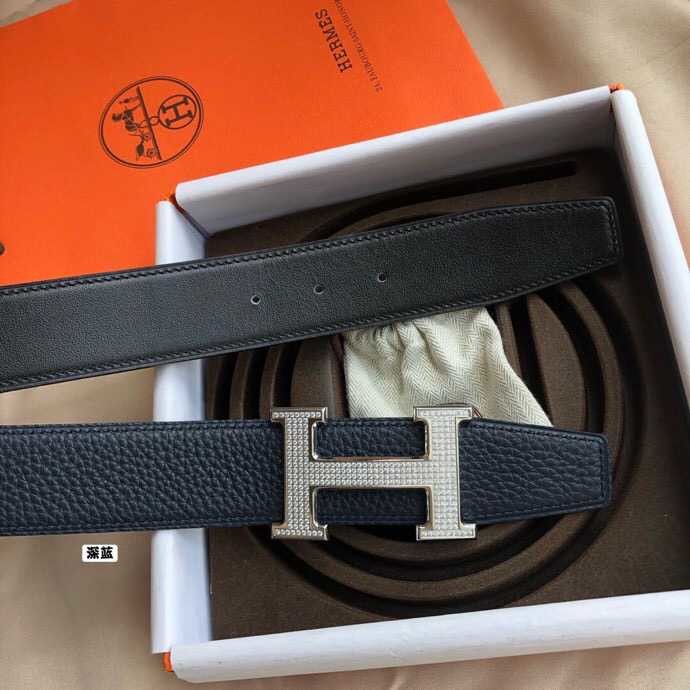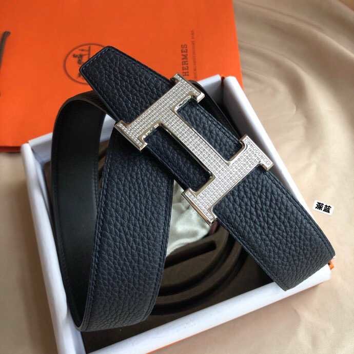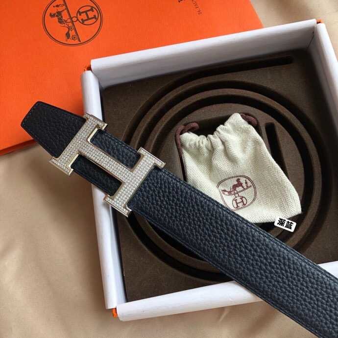 Hermes Stainless Steel H Full Rhinestone Bottom Leather Men s 3.8cm Belt