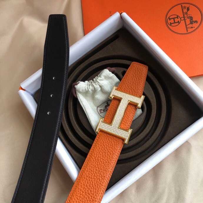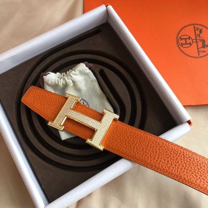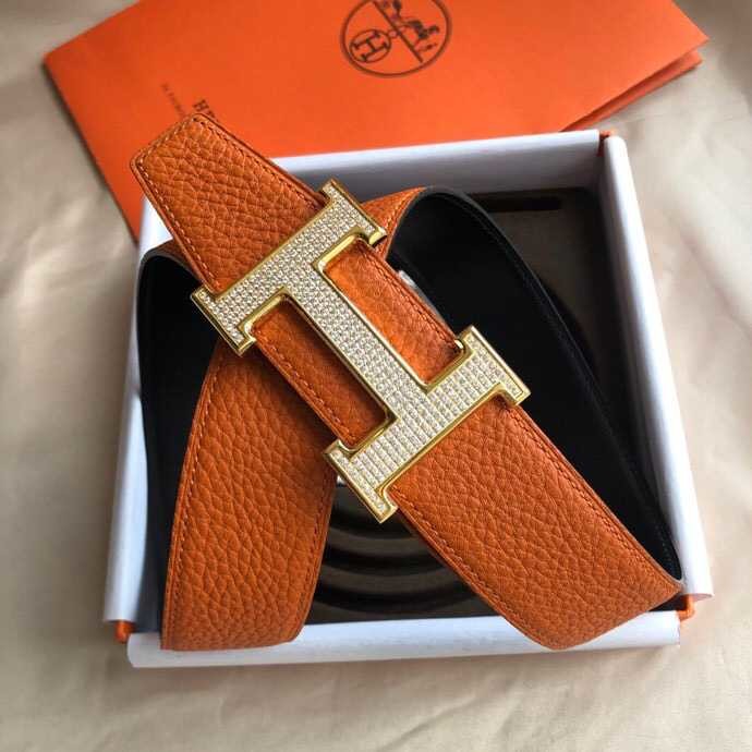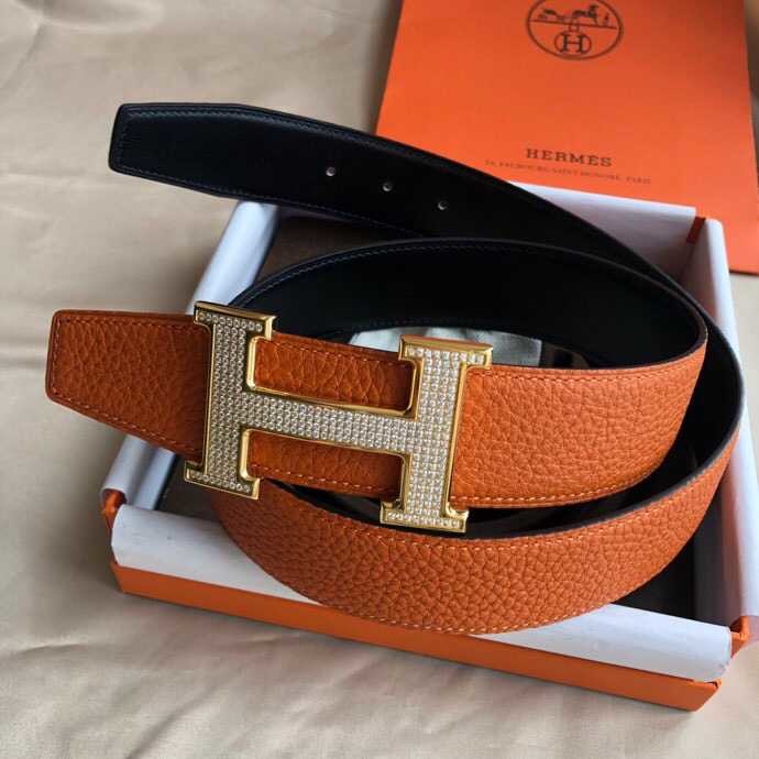 Hermes Stainless Steel H Full Rhinestone Bottom Leather Men s 3.8cm Belt