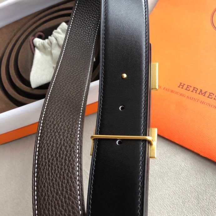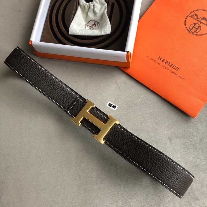 Hermes Classic stainless steel H metal buckle leather grained men s 3.8cm belt