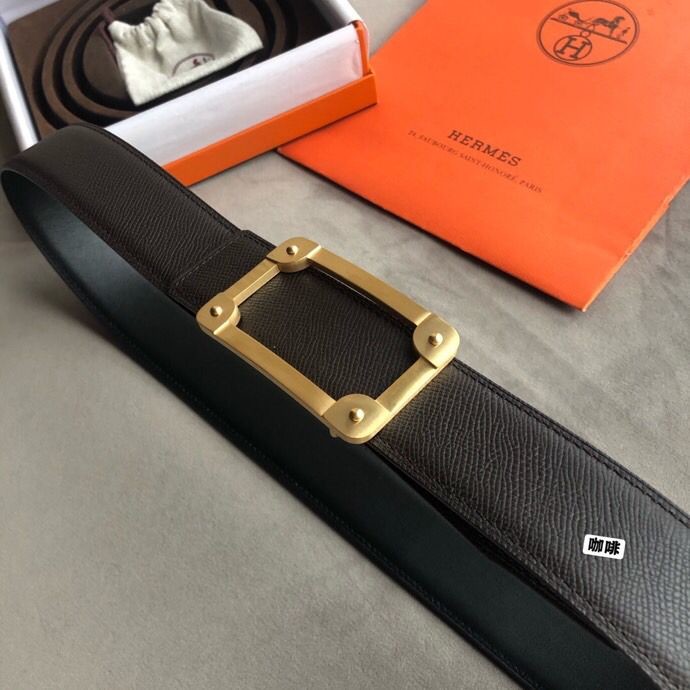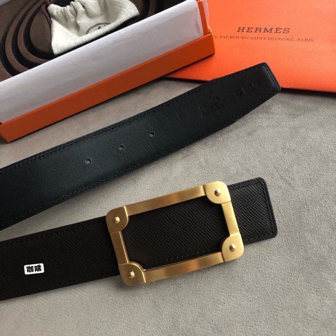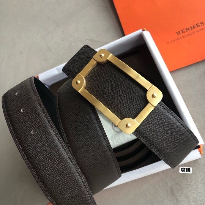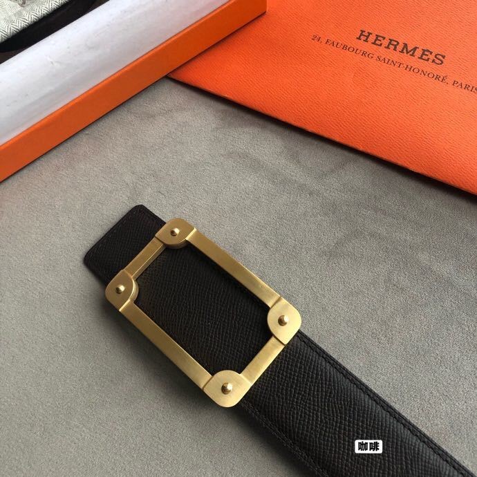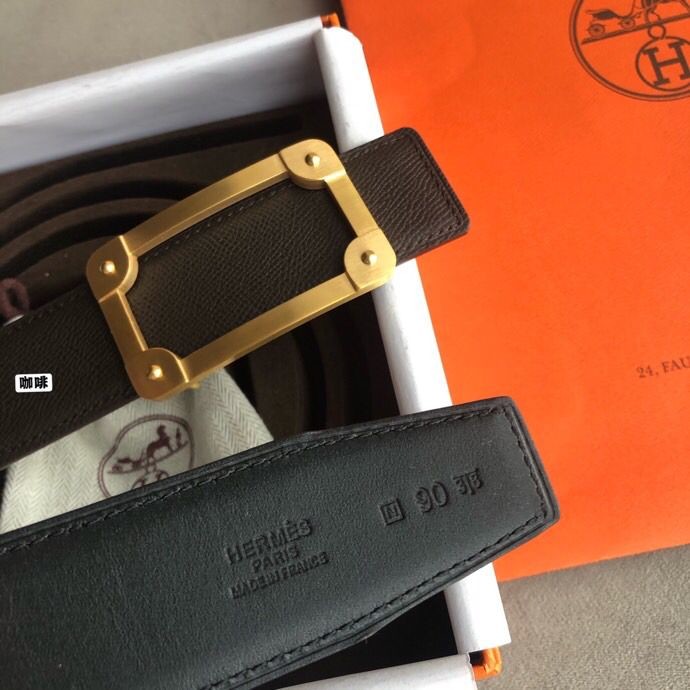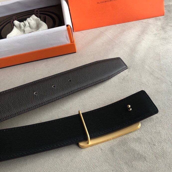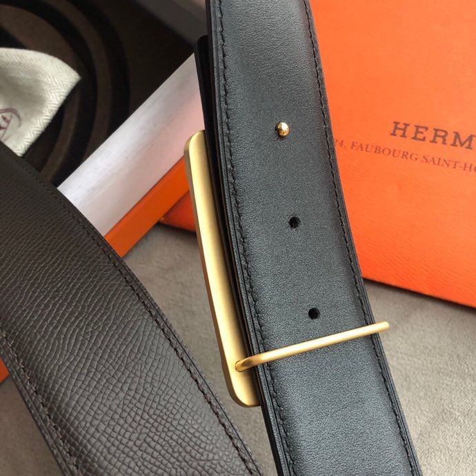 Hermes Stainless steel box hanging buckle leather men s 3.8cm belt
