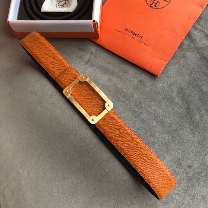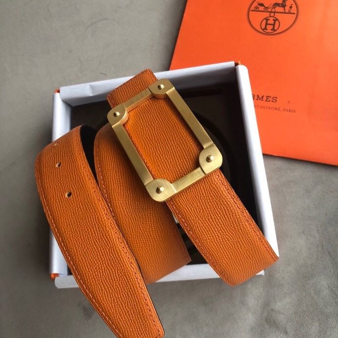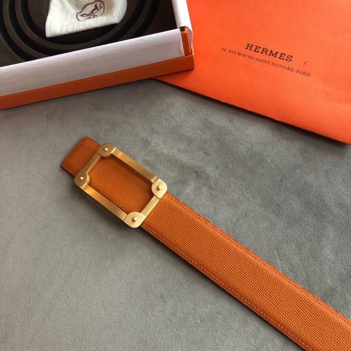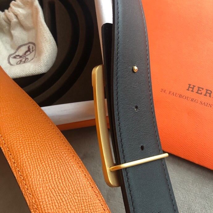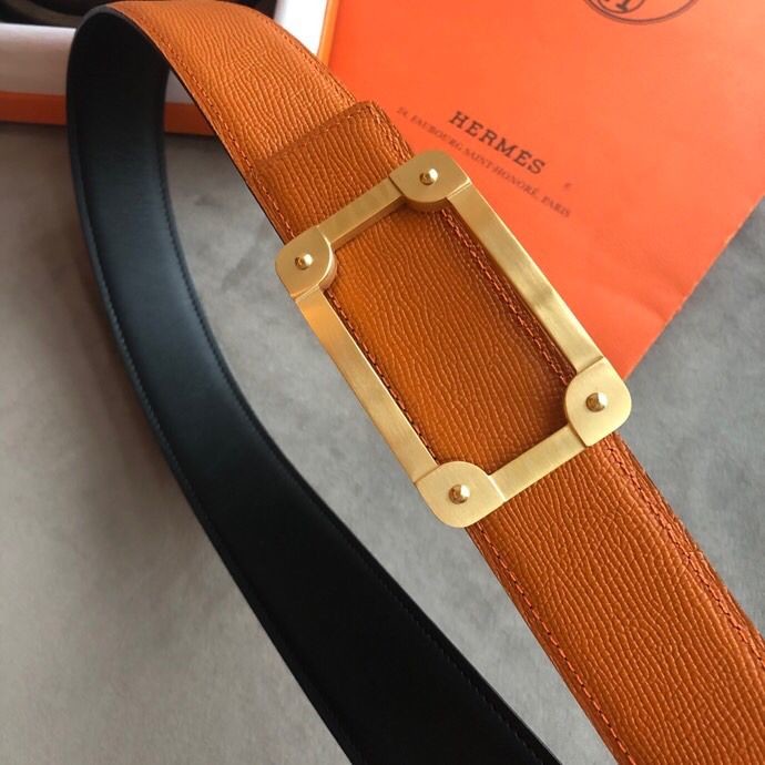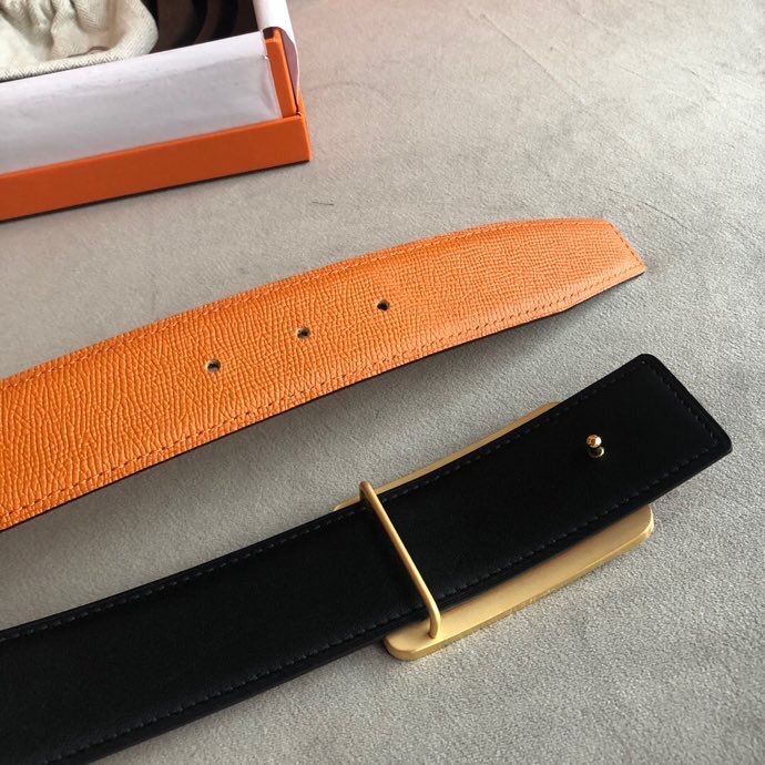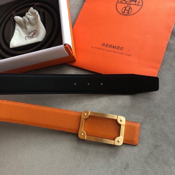 Hermes Stainless steel box hanging buckle leather men s 3.8cm belt