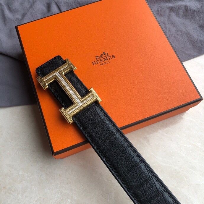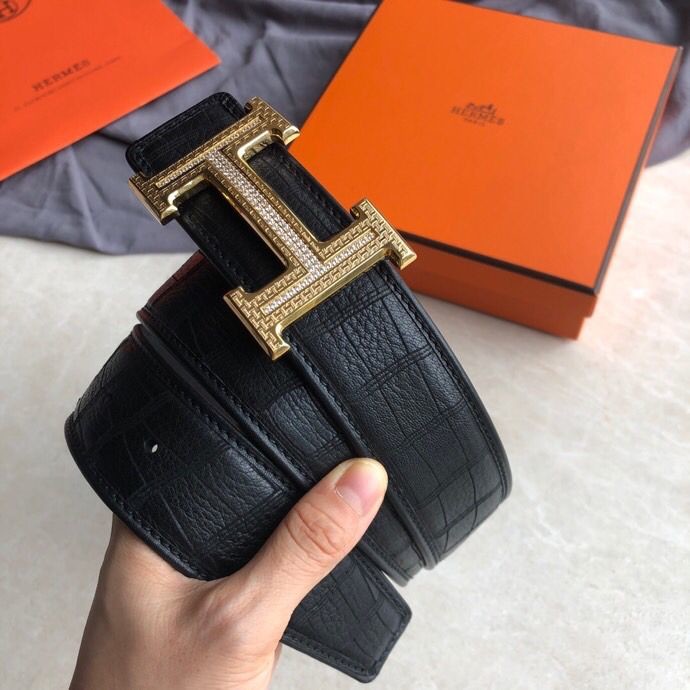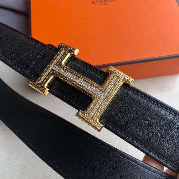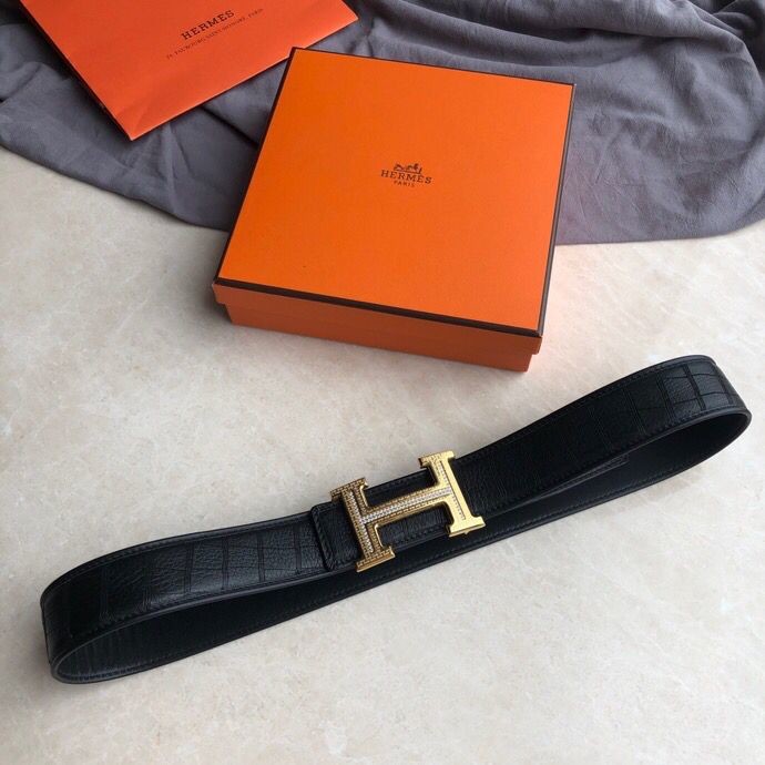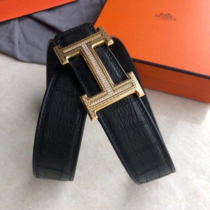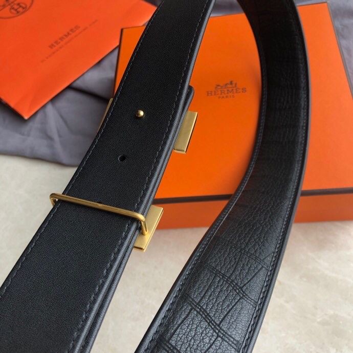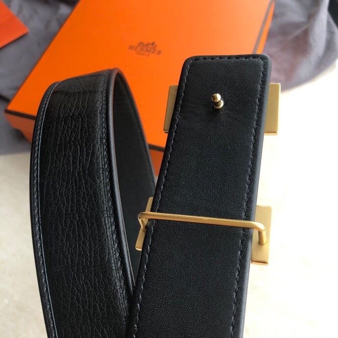 Hermes Stainless steel H pattern buckle deerskin men s 3.8cm belt