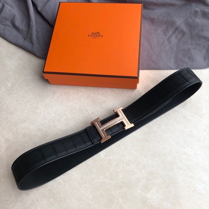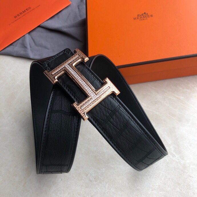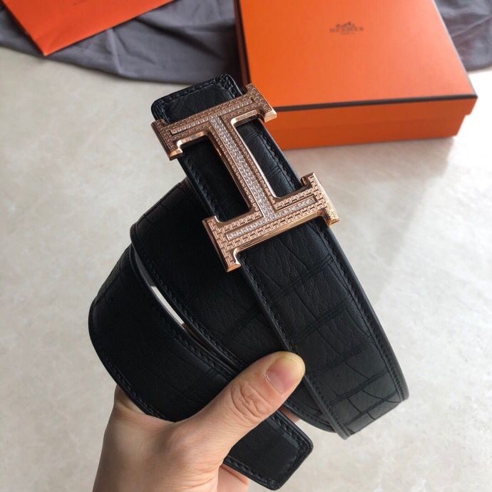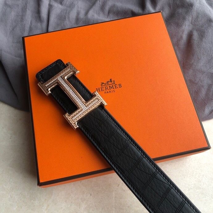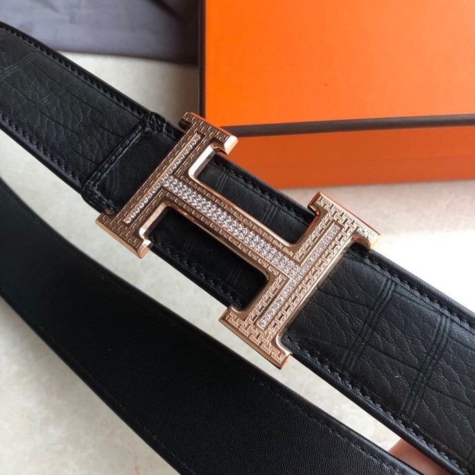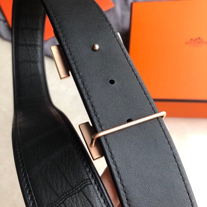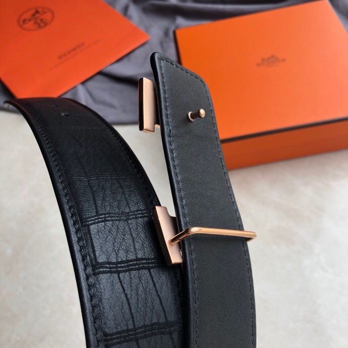 Hermes Stainless steel H pattern buckle deerskin men s 3.8cm belt