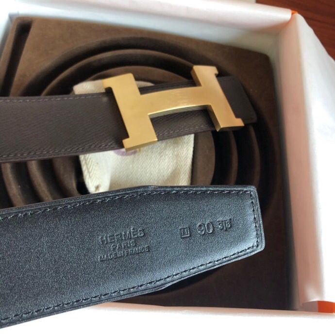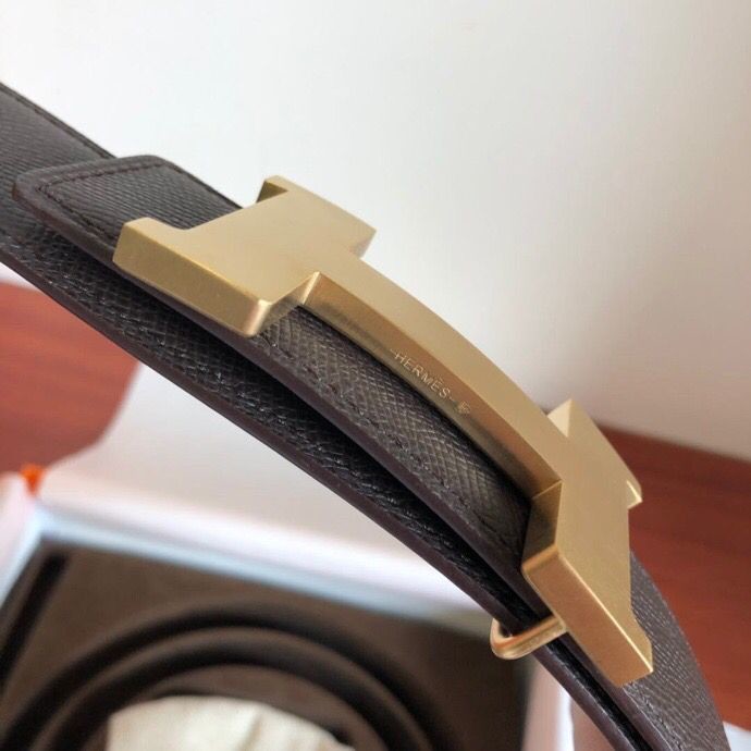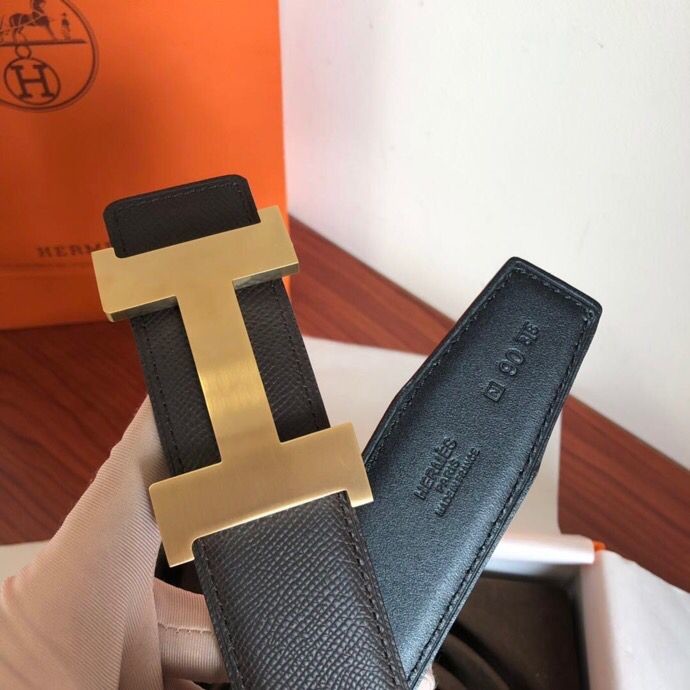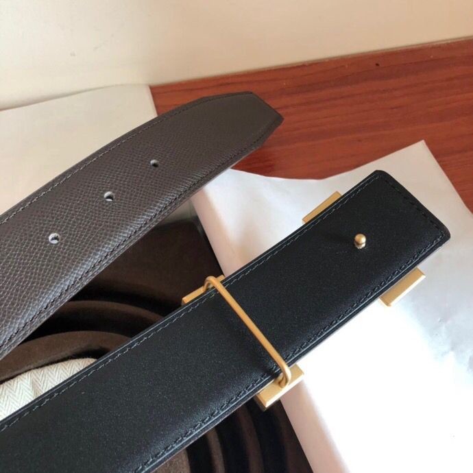 Hermes Stainless steel four-corner metal buckle leather men s 3.8cm belt