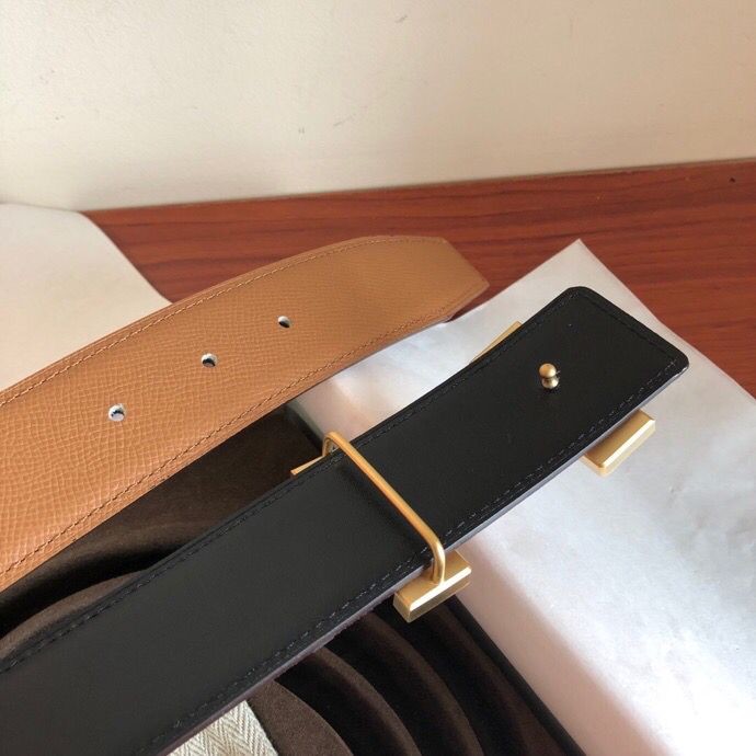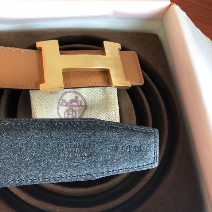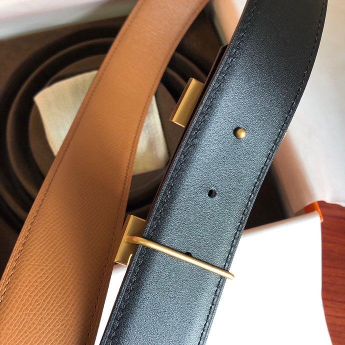 Hermes Stainless steel four-corner metal buckle leather men s 3.8cm belt